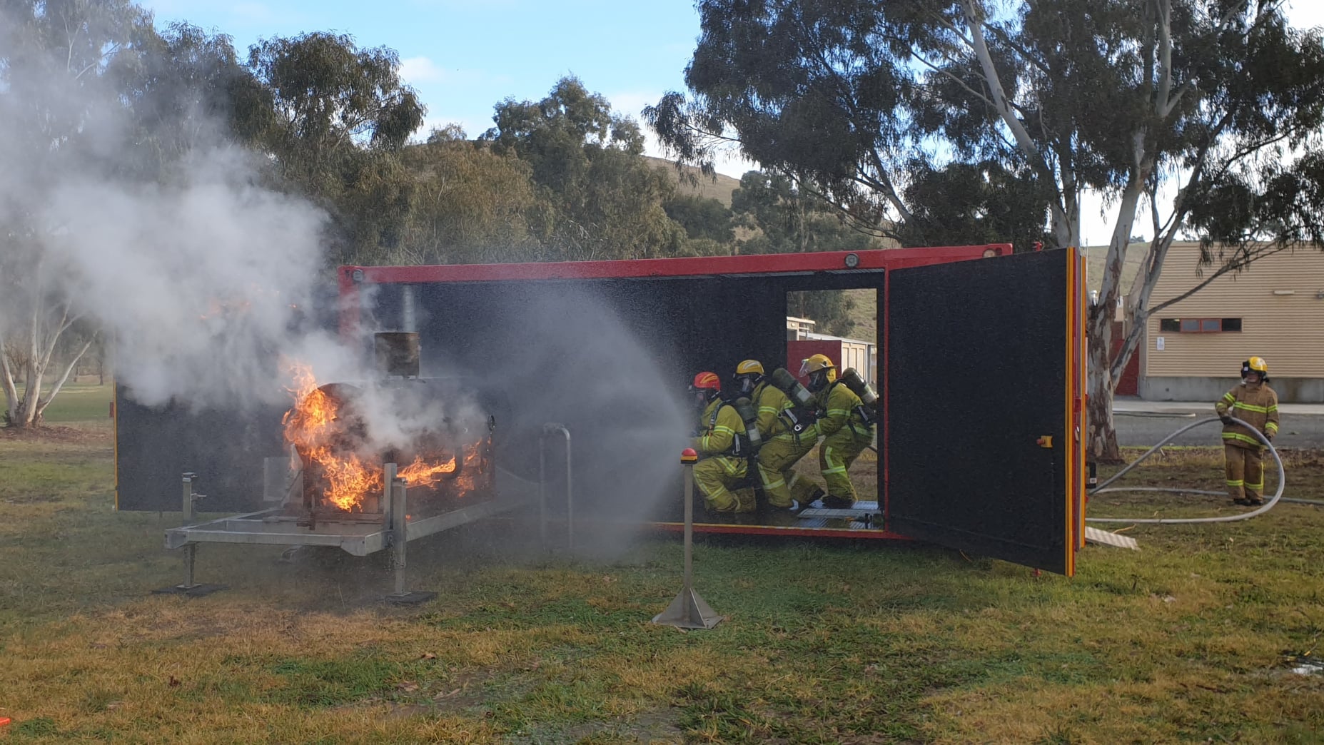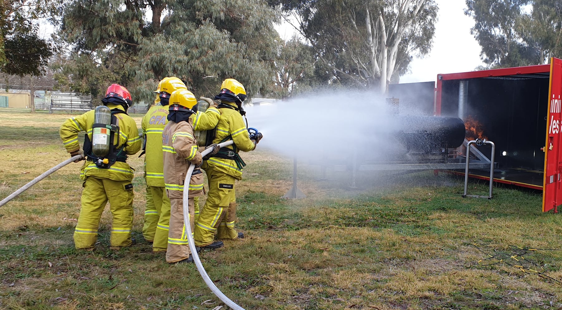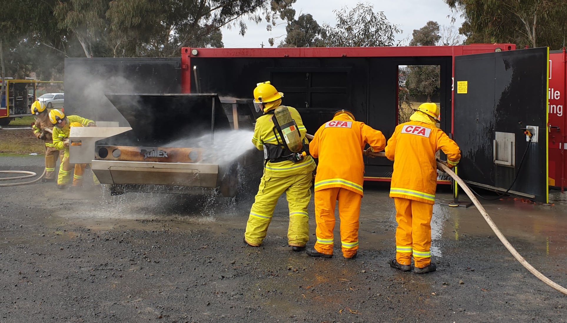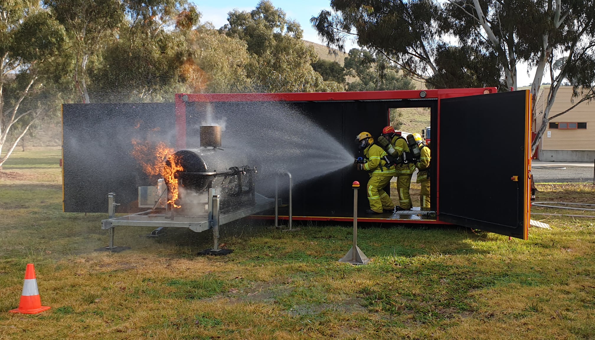 Two mobile training modules are currently located at Alexandra; one that simulates a car fire and another that allows members to practice a fire involving a LPG cylinder. The LPG cylinder prop is the newest addition to CFA’s range of mobile training modules.