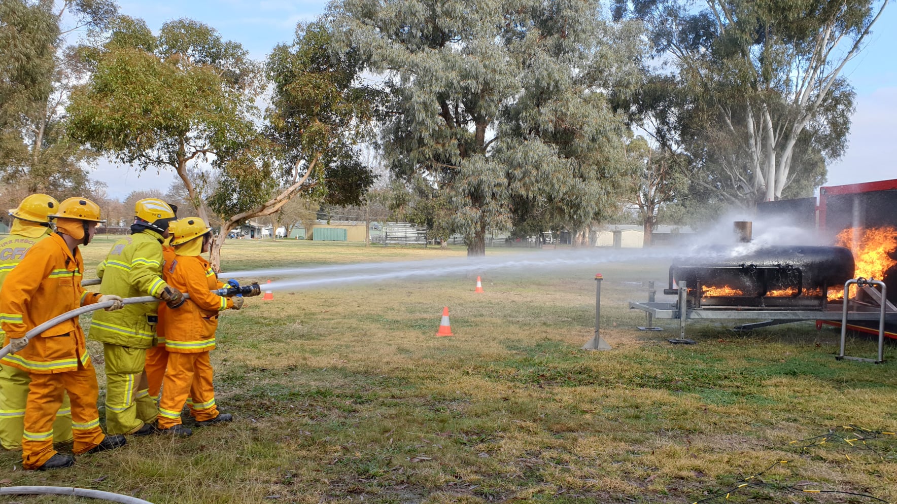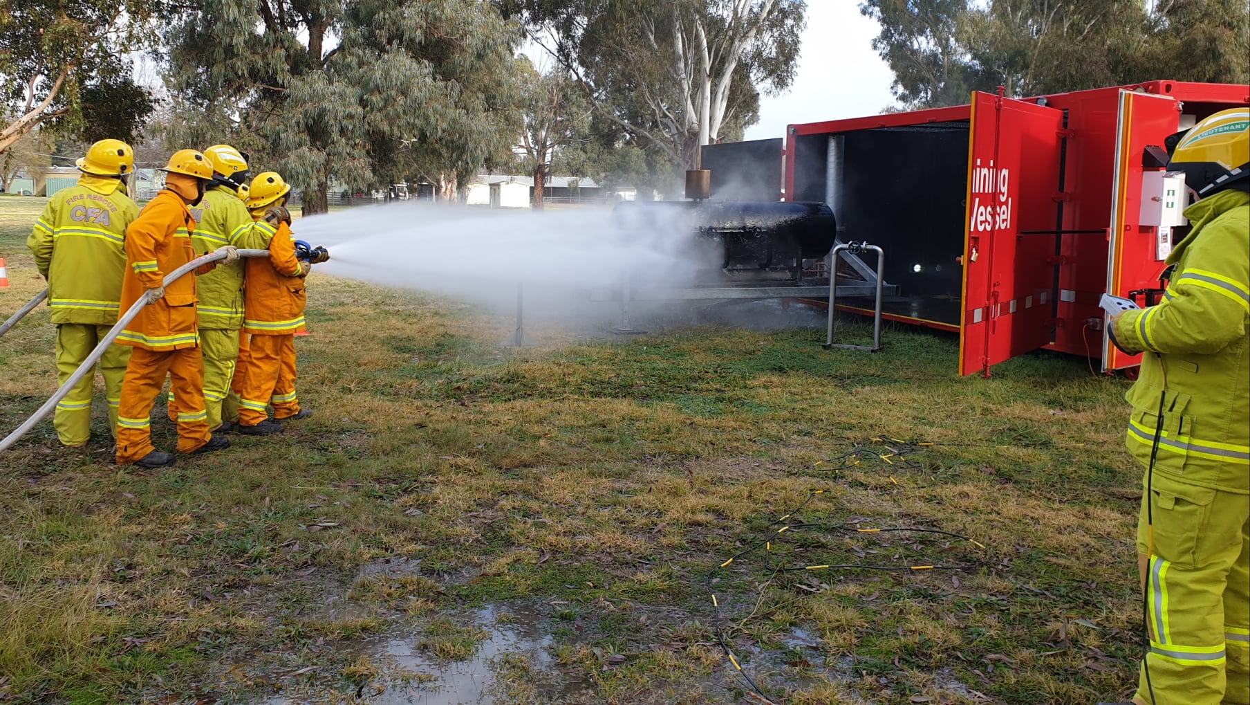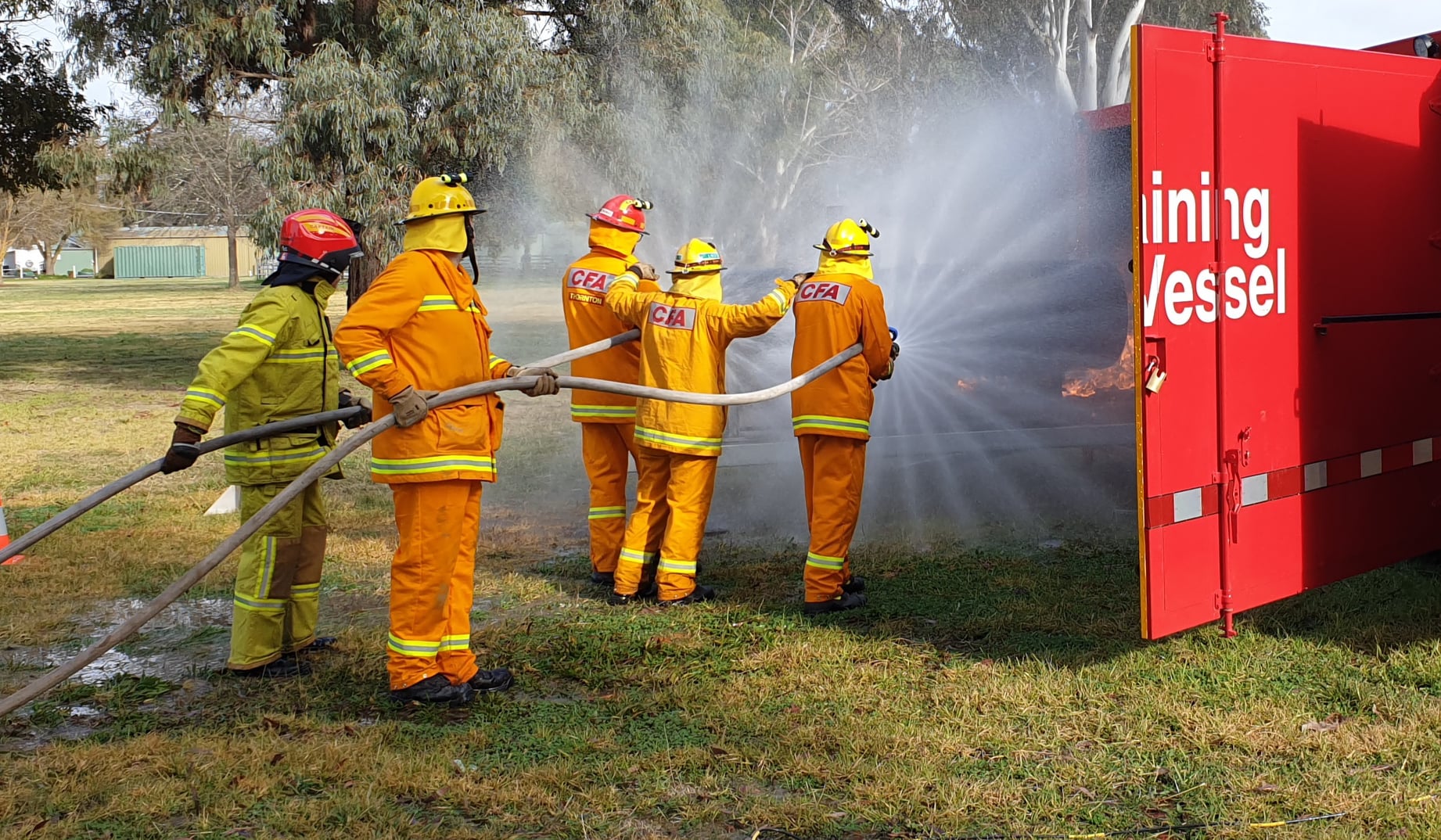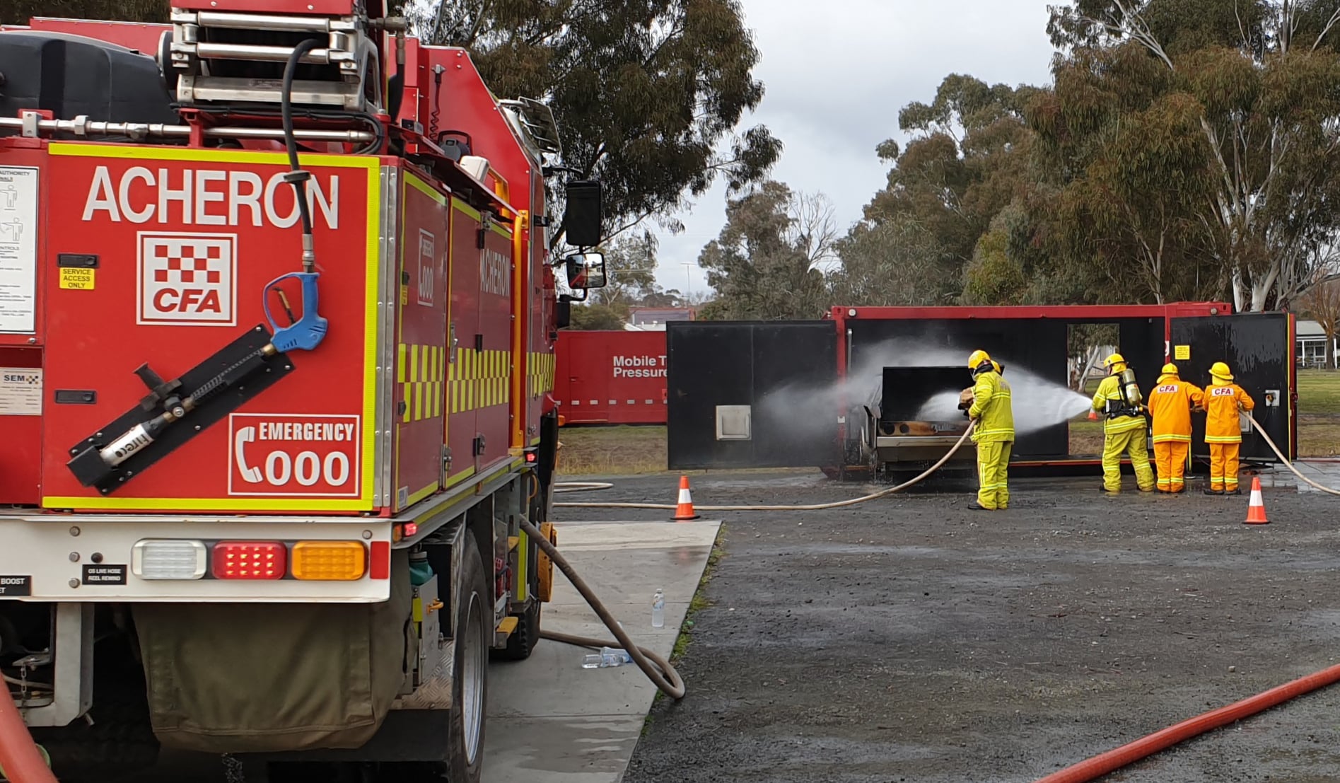 Two mobile training modules are currently located at Alexandra; one that simulates a car fire and another that allows members to practice a fire involving a LPG cylinder. The LPG cylinder prop is the newest addition to CFA’s range of mobile training modules.