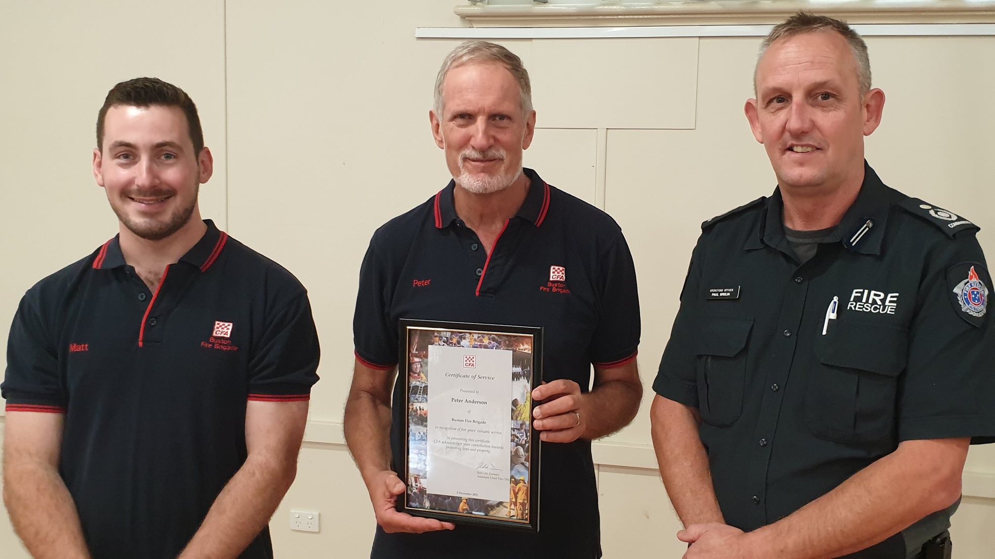 Brian Worcester responded on behalf of all recipients saying how much of a privilege it has been to be part of the CFA and Buxton Fire Brigade. “It isn’t always easy but it is rewarding”, Brian said.