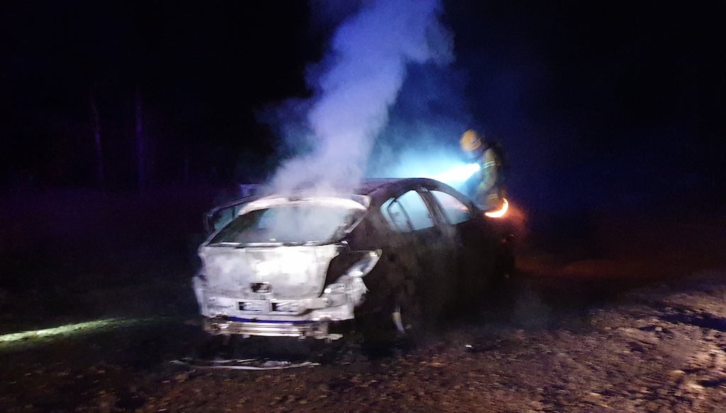 The vehicle was located at Worcester Road, just south of Nichols Road, and was well alight when the first appliance arrived at the scene. Structural qualified members from Buxton utilised compressed air breathing apparatus to extinguish the fire which was contained to the vehicle. The initial attack focused on the nearby grass and scrub to ensure fire had not spotted in to the bush; fortunately there was no wind and cool temperature.
