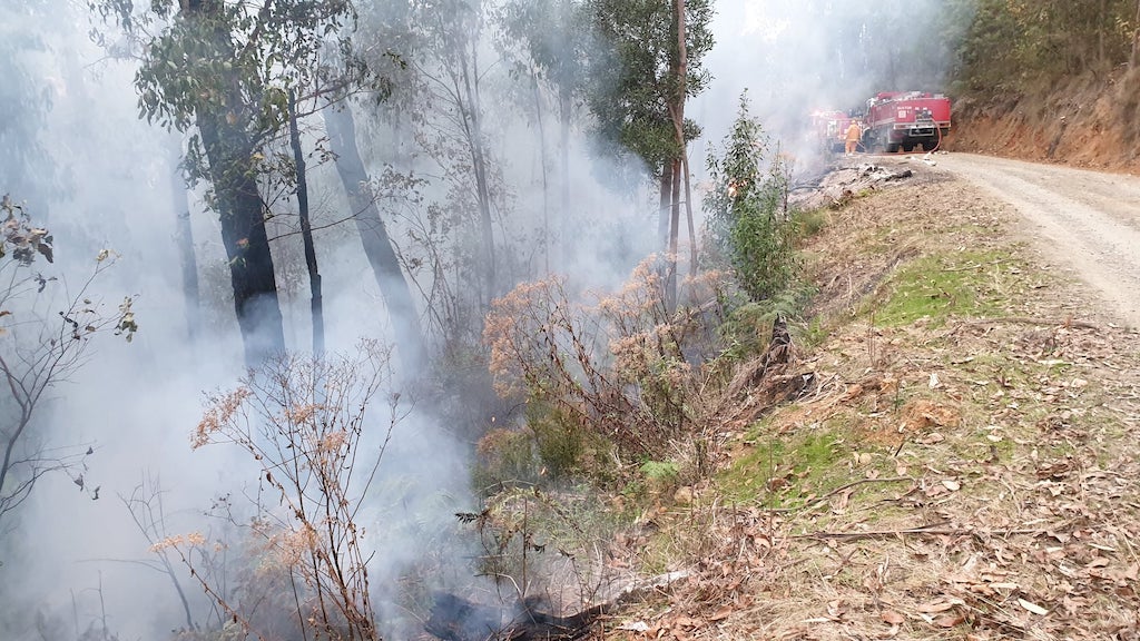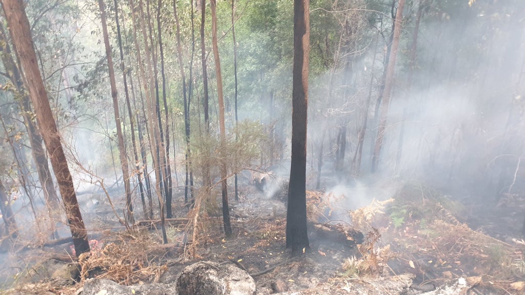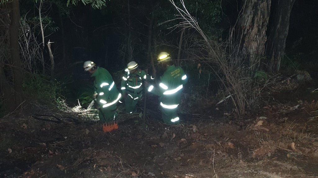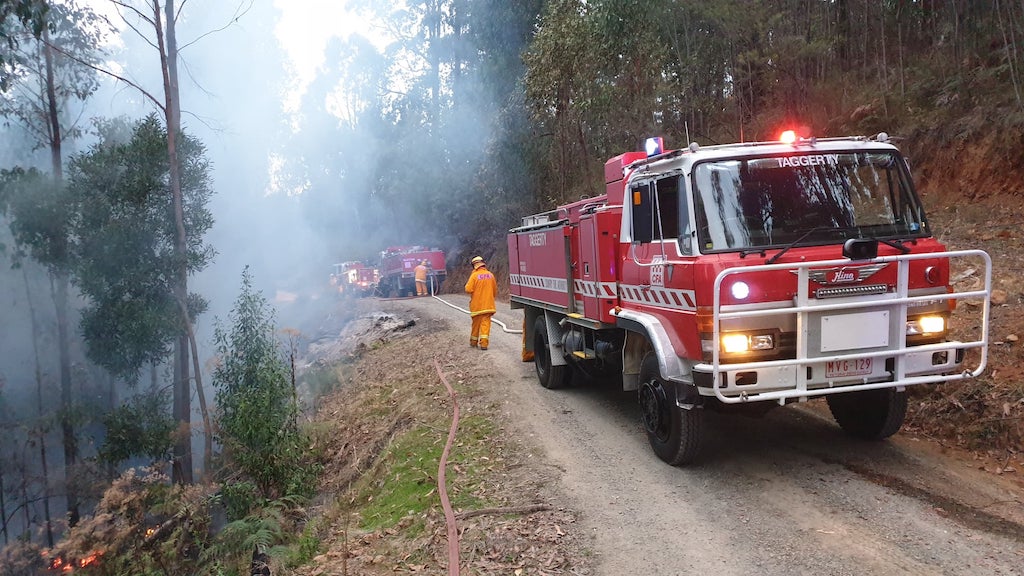 Crews from Marysville and Buxton set about cutting the fire off on both sides by advancing hose lines down from the track. Once the fire had been pulled up it was possible to review the situation and develop a plan to overhaul the area. Due to the steep nature of the site, a request was made for assistance from Forest Fire Management Victoria crews. Initially it was thought machinery would be required to deal with the difficult conditions.