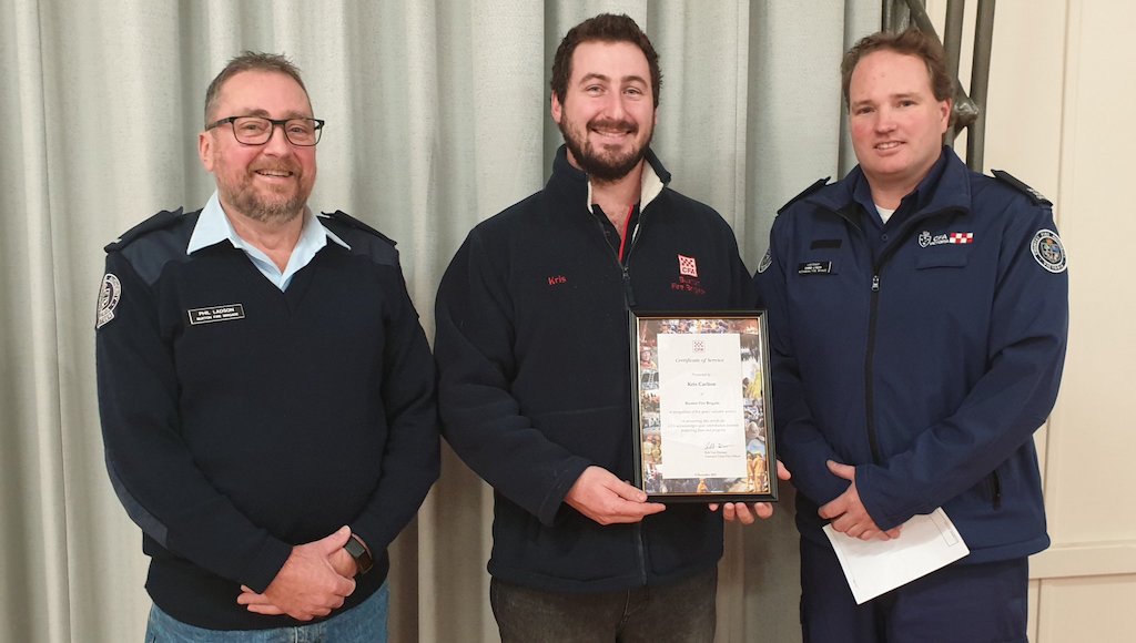 Following the AGM, five year service awards were presented to Kris Carlton and Isaac Sims. Thanks go to DGO Chris Lynch from Alexandra Group who presented certificates to Kris and Isaac assisted by Lt Phil Ladson.
