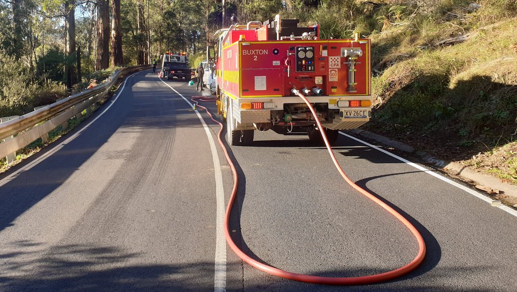 This morning Buxton and Marysville brigades were responded in support of Narbethong brigade for a reported motor vehicle accident on the Maroondah Highway below the Black Spur.