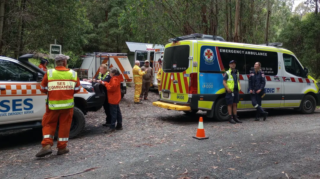 In the meantime, a Control Point was established at the carpark with Victoria Police assuming the role of Incident Controller. CFA, SES, and Ambulance Victoria units staged at the carpark while the ground crew made their way to the incident site. The air ambulance was responded and stoodby until weather conditions improved.