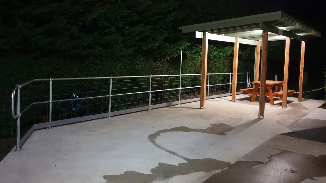 Last week, Josh and Stuart from E-Tec - Electrical Technology ran power to the gazebo giving us a powerpoint and lights switched from the station. Yesterday, Chris and the team from Alexandra Stainless installed a safety rail to the edge of the concrete slab.