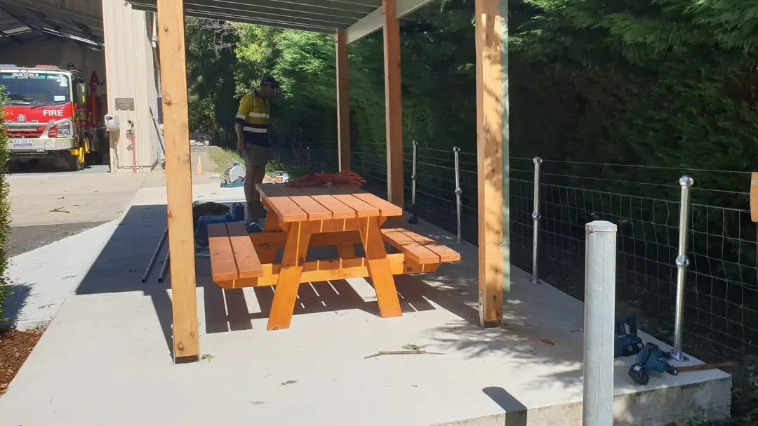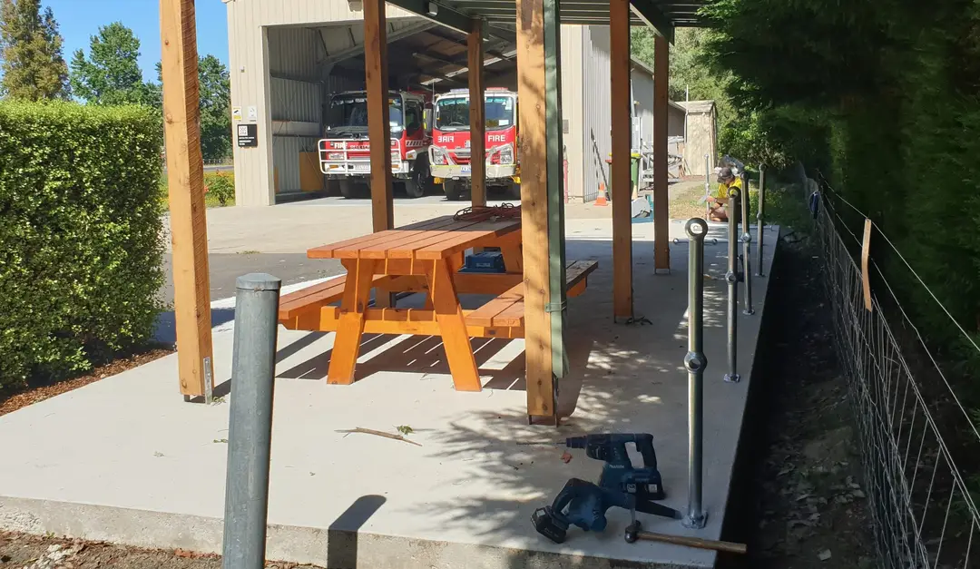The gazebo, along with the flagpoles, has been funded from brigade funds and a generous grant provided, through the Buxton Progress Association, by Foundation Murrindindi. We are very grateful to the BPA and Foundation, along with the various local trades, that have supported us along this journey.