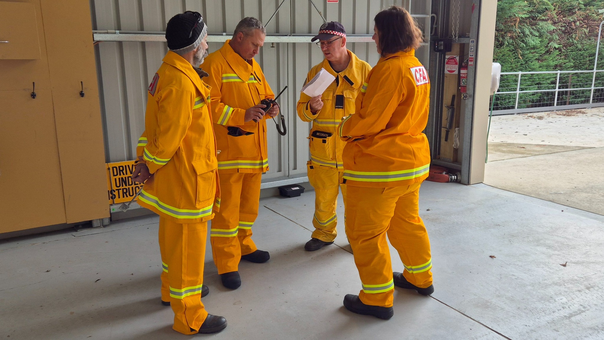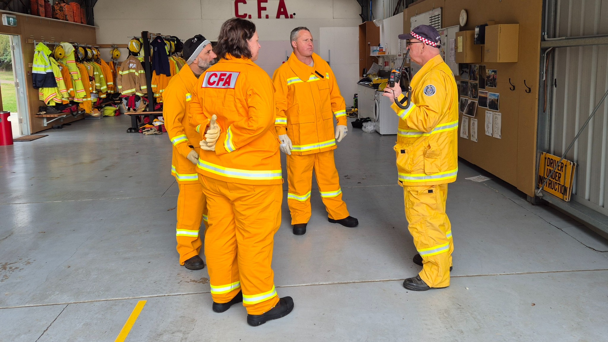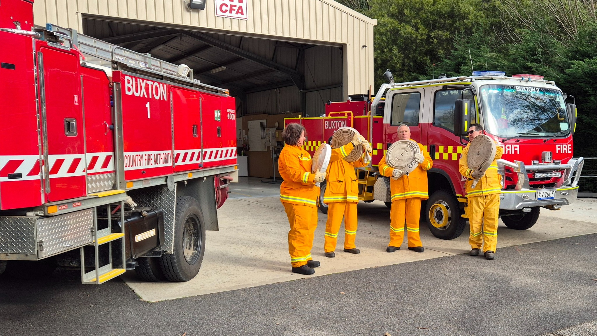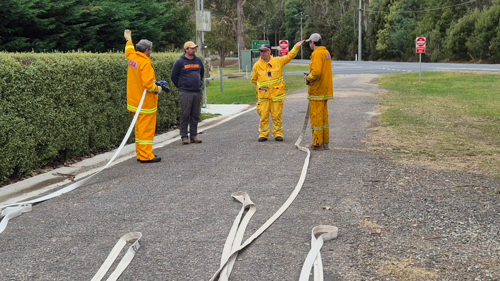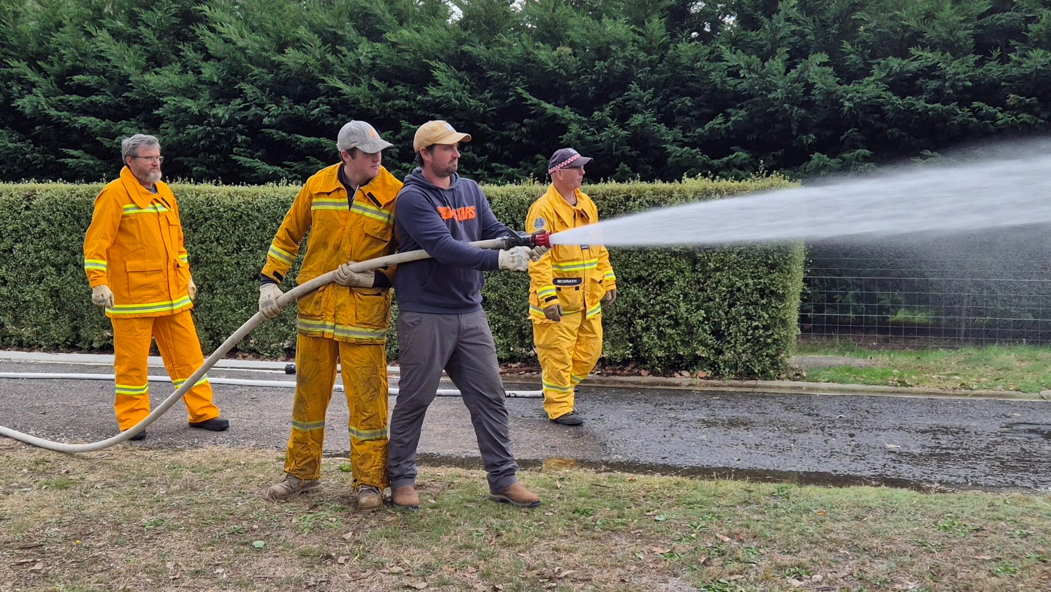 The recruits (some of whom are still in the process of being allocated their bushfire protective clothing) completed drills on radio operations, hose deployment, water delivery, and pump operations. This morning was one of three practical sessions offered, as part of the block course, to cover the mandatory practical drills and brigade familiarisation tasks in a group learning environment.
