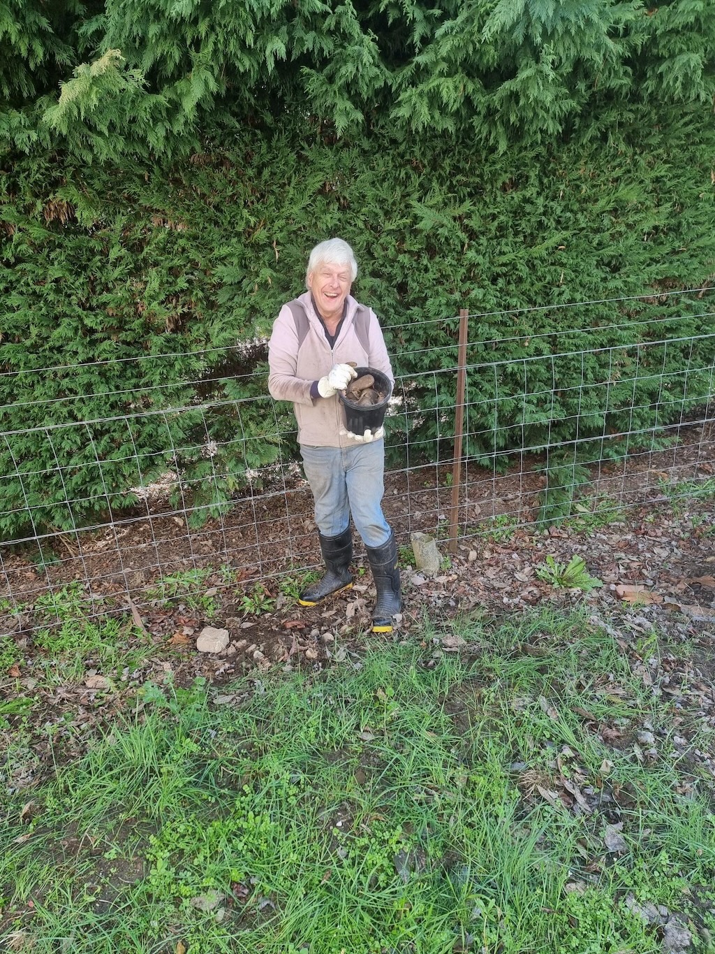 The roses along the emergency vehicle entry have been relocated to make it easier for the Council to mow the road reserve. It will also assist with maintaining the bark that falls from the three gum trees.