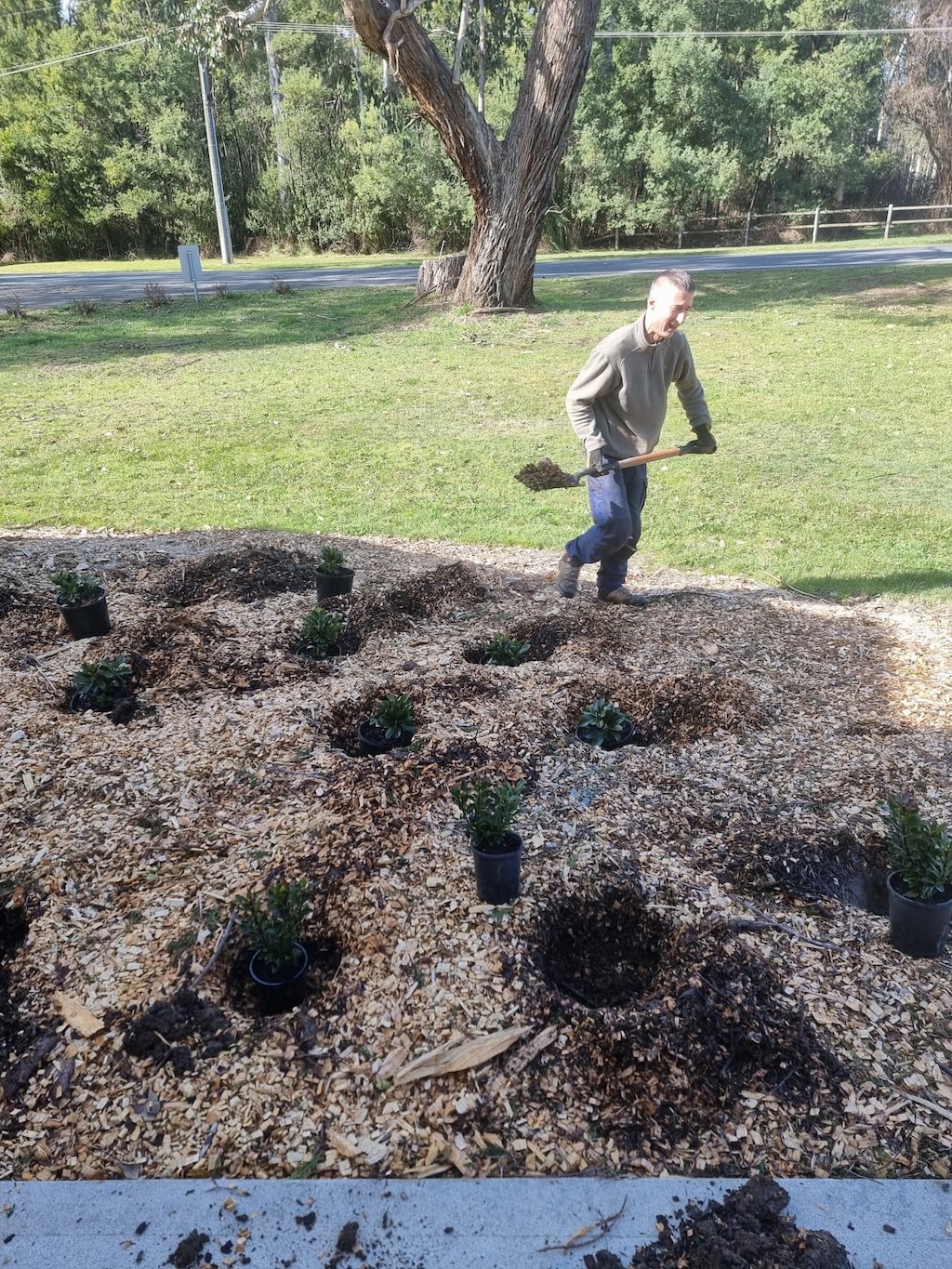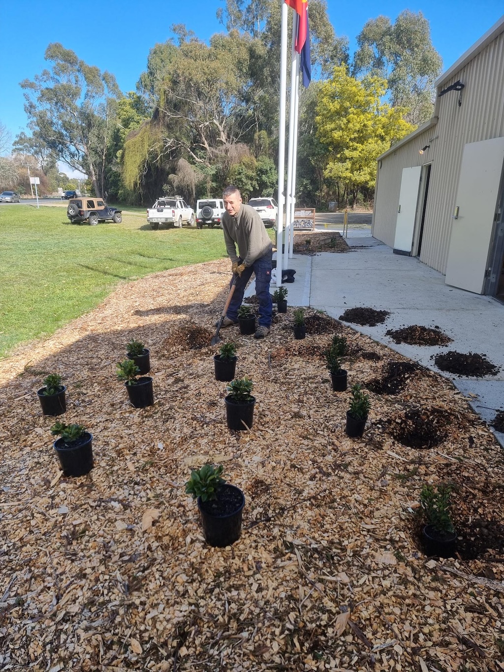Yesterday, brigade members gathered at the station to plant out the new garden bed surrounding the flagpoles and tidy up other areas. The garden bed has been prepared over recent months as part of our station grounds improvement project.