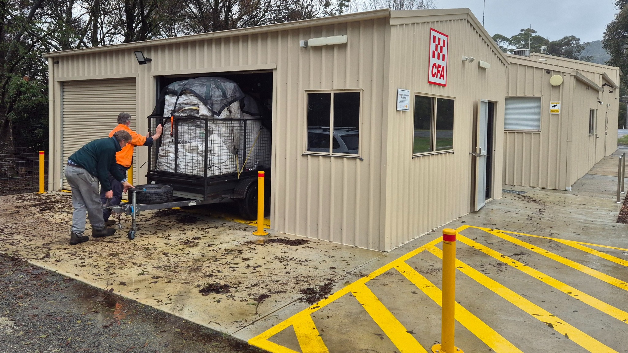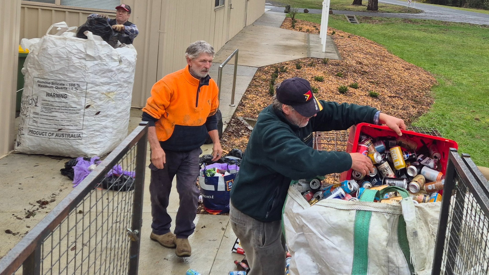 With a bale of bottles and another bale of aluminium cans loaded on the trailer, the guys relocated to the fire station to continue loading up for a load of containers to take over to Eildon tomorrow.