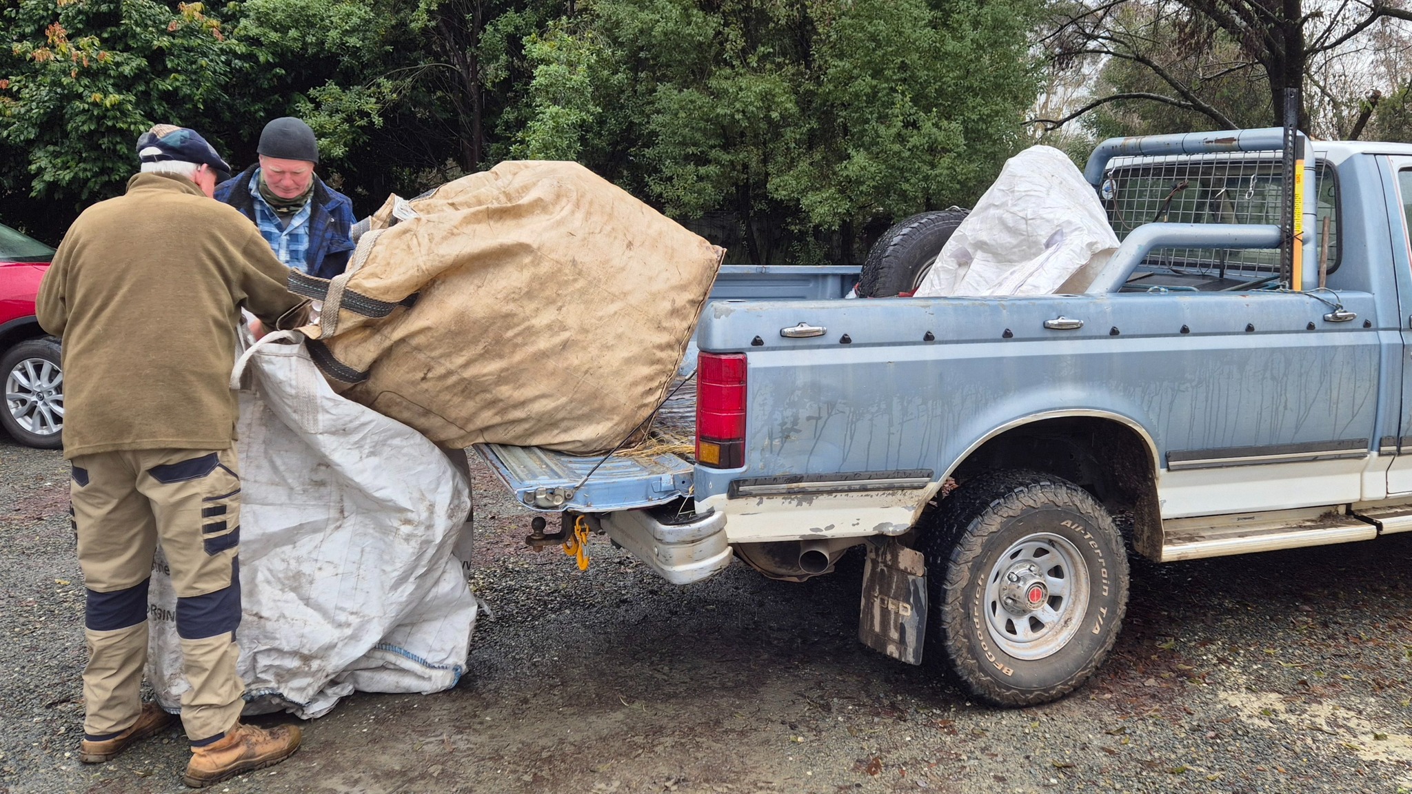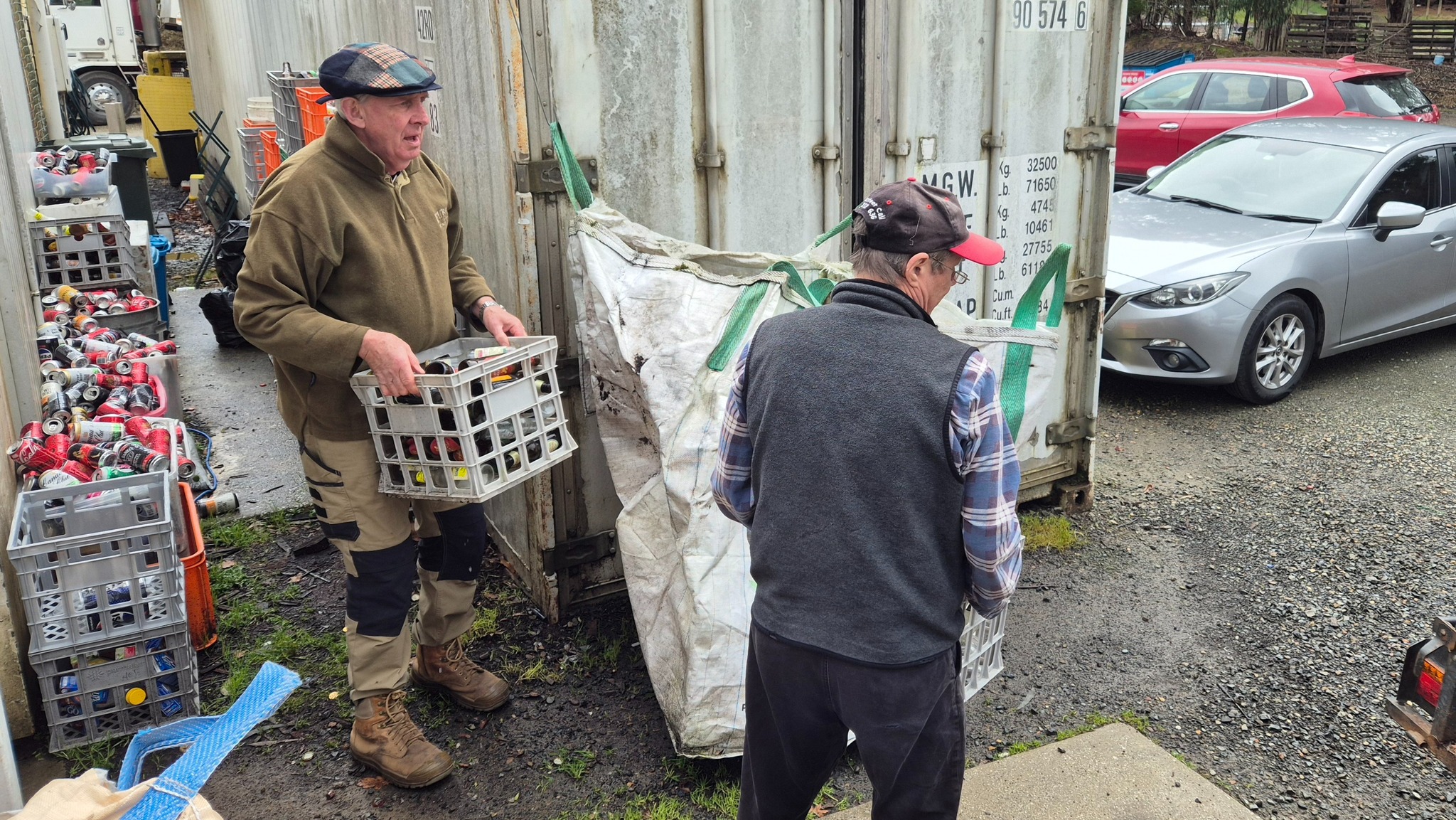 While loading up, a couple of locals dropped in with a bale of their own full of cans crushed before the CDS started; which we transferred to one of our bales for transport to Kilsyth along with other pre-CDS crushed cans. They then delivered an empty bale to a neighbour and brought back his full bale of containers. Fantastic!