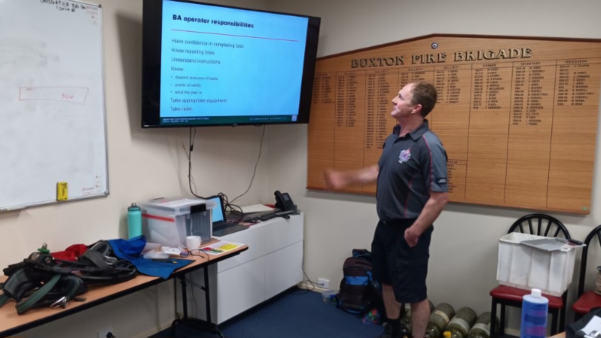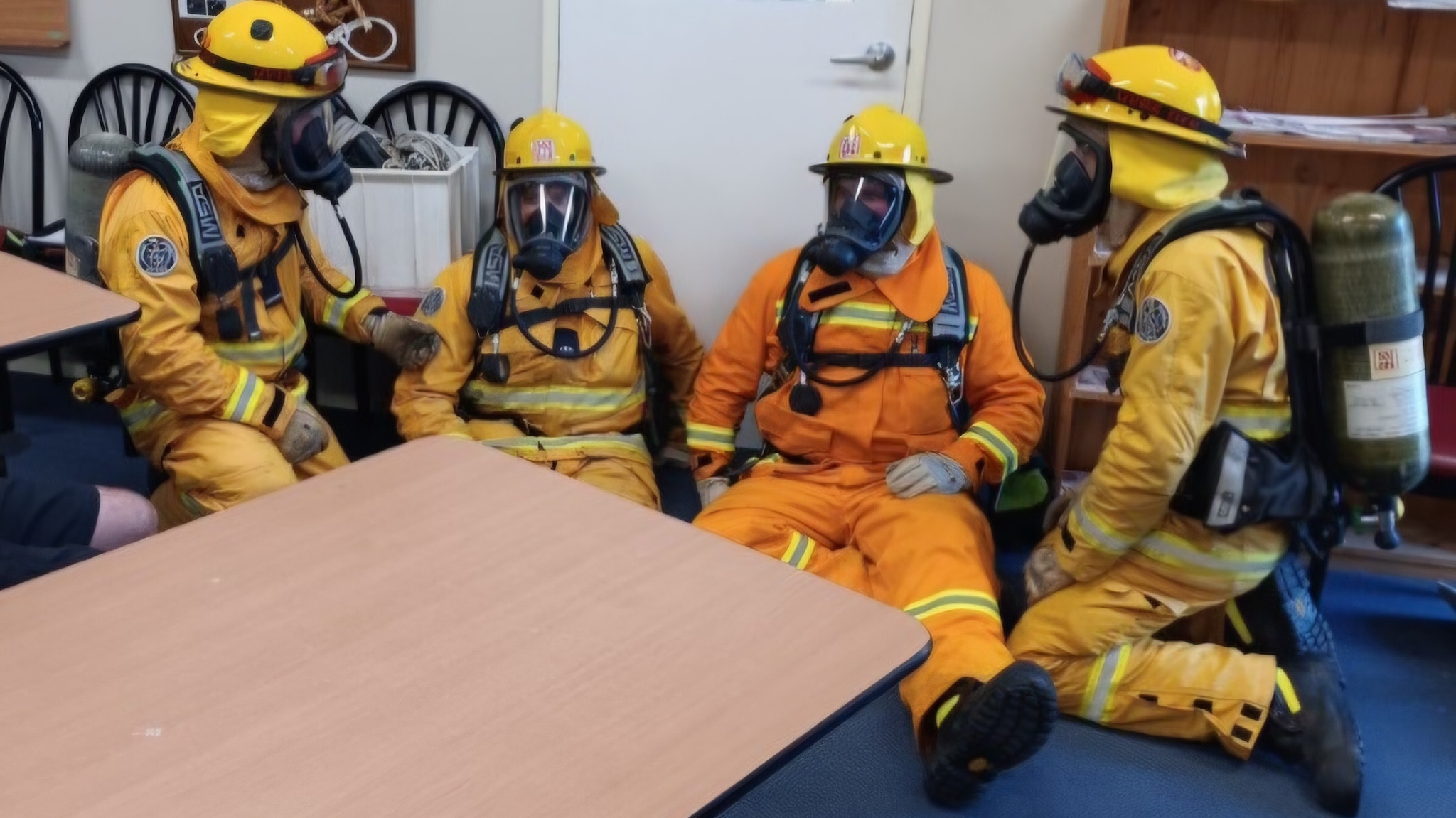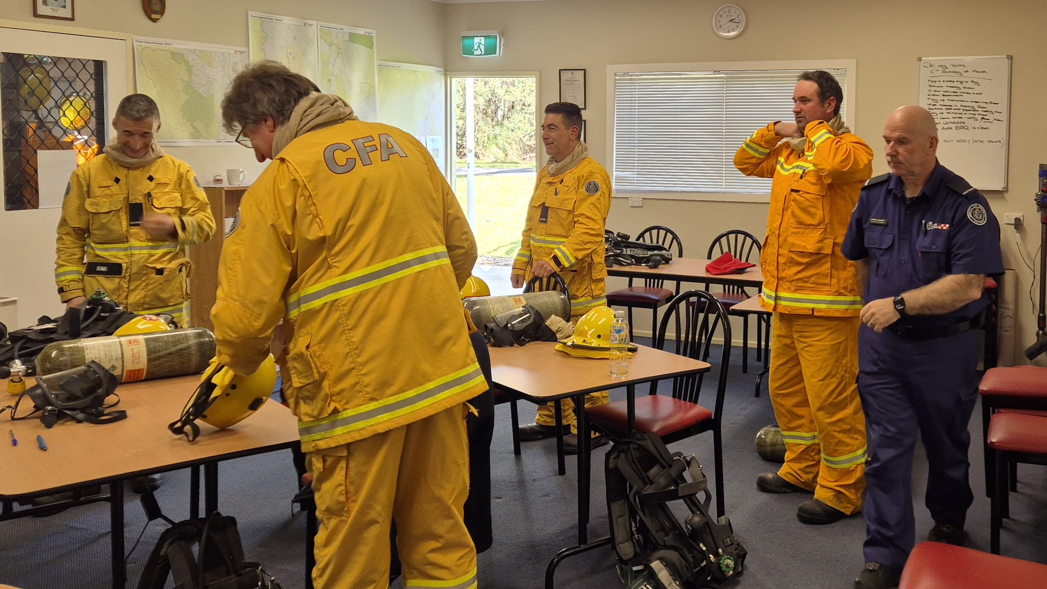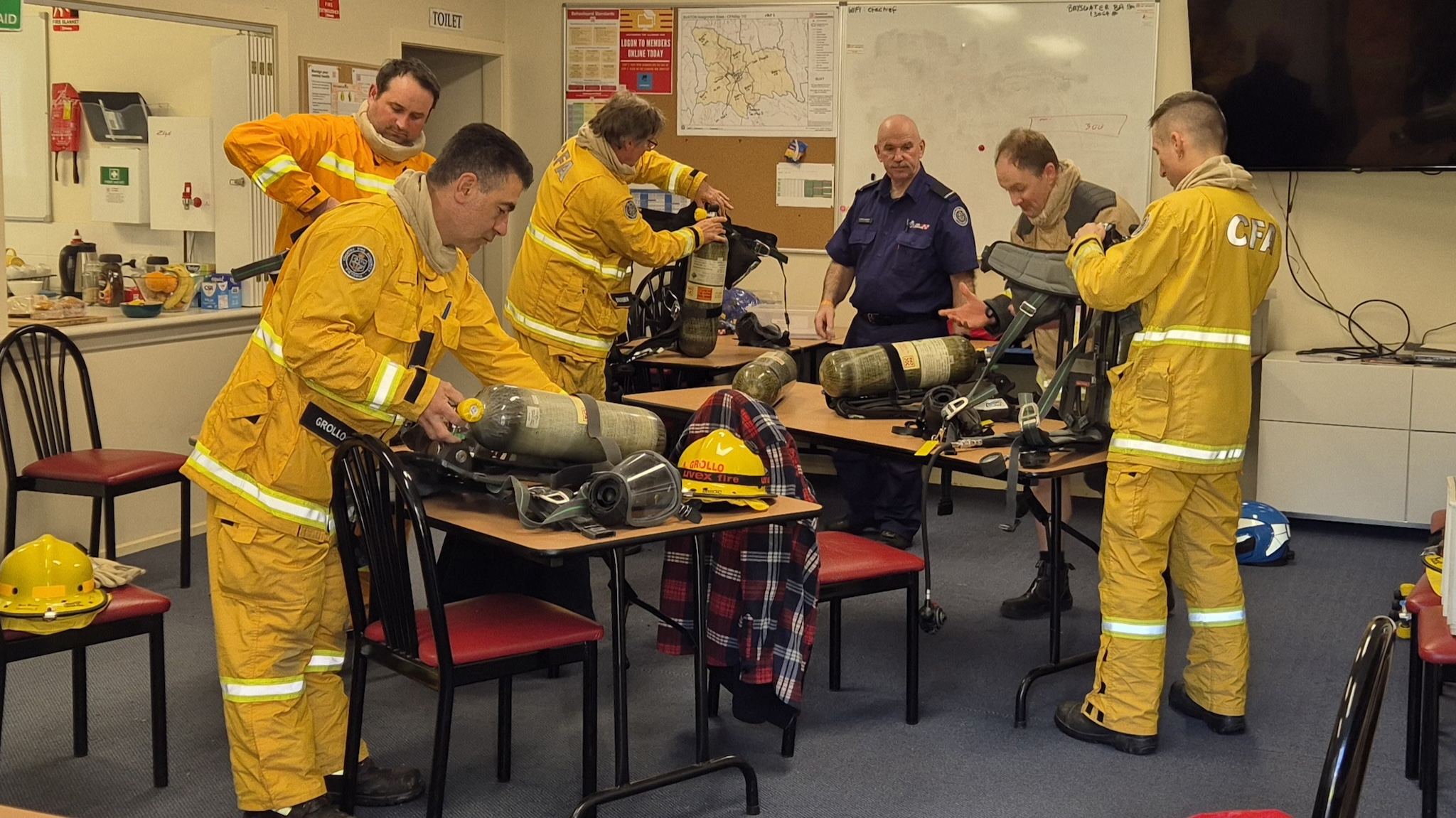 This weekend, we have four of our members undertaking a Compressed Air Breathing Apparatus course at the station instructed by District 12 Structural Instructor Terry Rule and Eildon's Lt Darren McGrath. Two of the members undertaking the course are full-time residents and the other two are part of our recreational property owners cohort; a good mix of full-time and part-time crew.