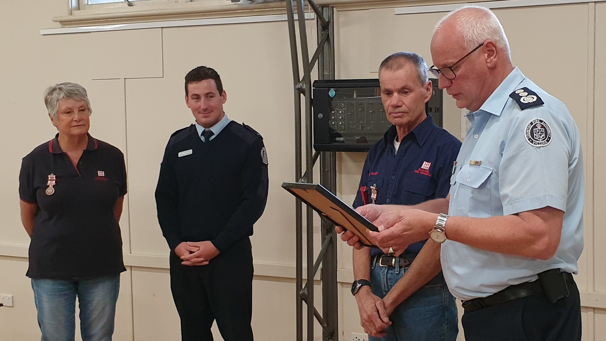 Rob presented Judy with a CFA Long Service medal recognising her 20 years service to CFA. Bill was then bestowed with CFA Honorary Life Membership along with his 45 years Long Service medal. As Bill and Judy are leaving Victoria for the sun in Queensland, they are officially retiring from the Country Fire Authority and each was presented with framed retirement certificates recognising their contribution to CFA. In addition, the CFA Chief Officer, Jason Heffernan, sent personal letters of appreciation to both Judy and Bill which Rob read out before presenting them to each member. Bill was also presented with a special CFA plaque with the CFA emblem recording his nearly 50 years in CFA.