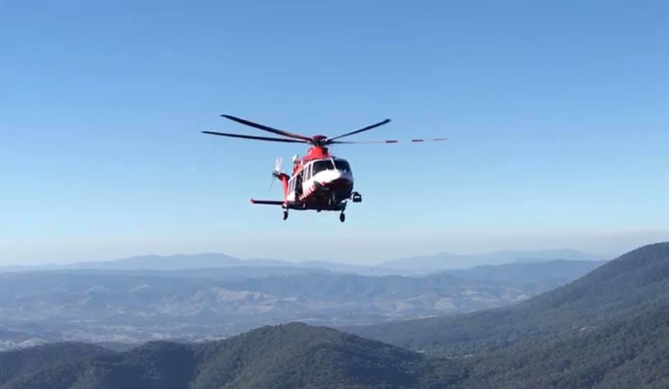 Marysville and Buxton CFA members assisted the CFA and FRV Rope Rescue Crews in staging equipment on Canyon Track. Fortunately, AV was able to stabilise the patient for a winch by HEMS1.