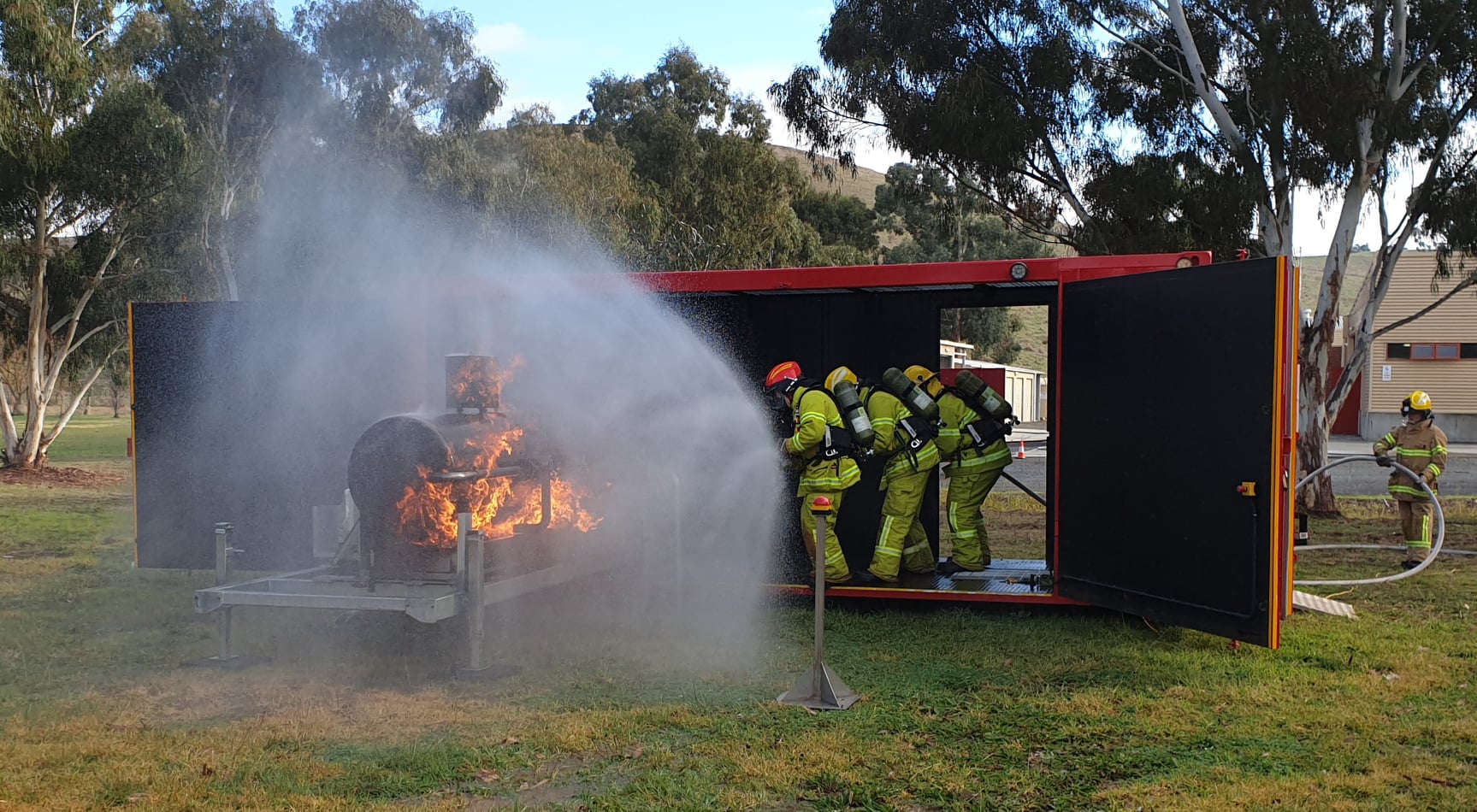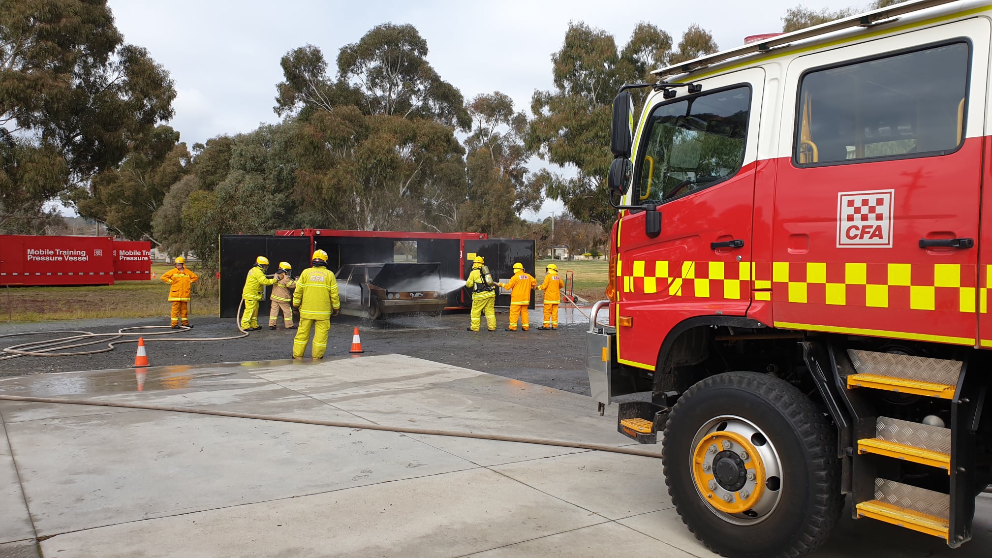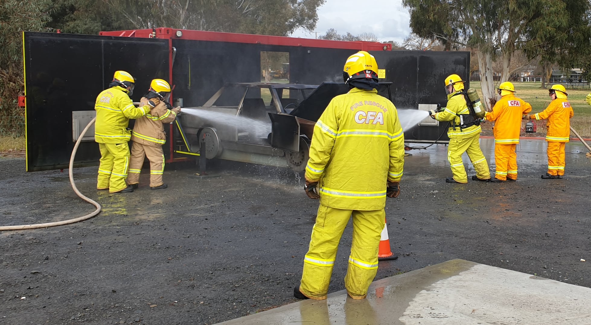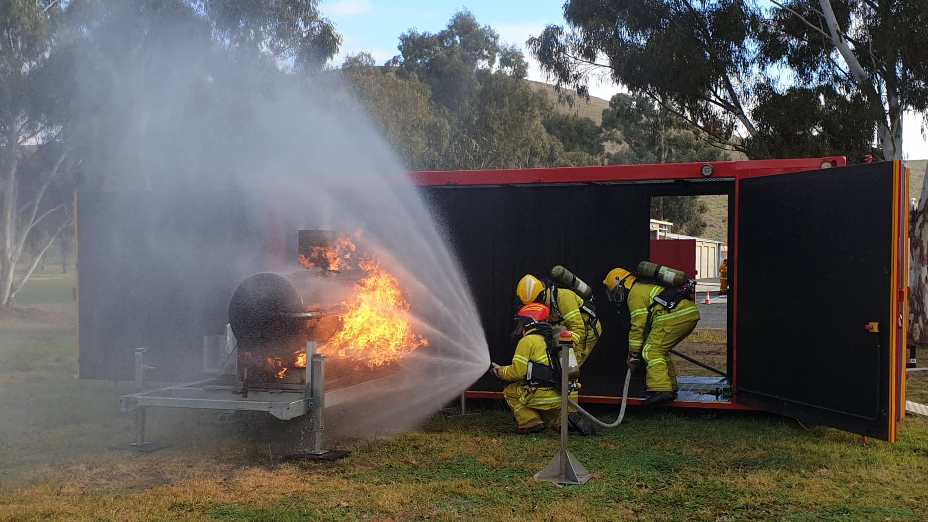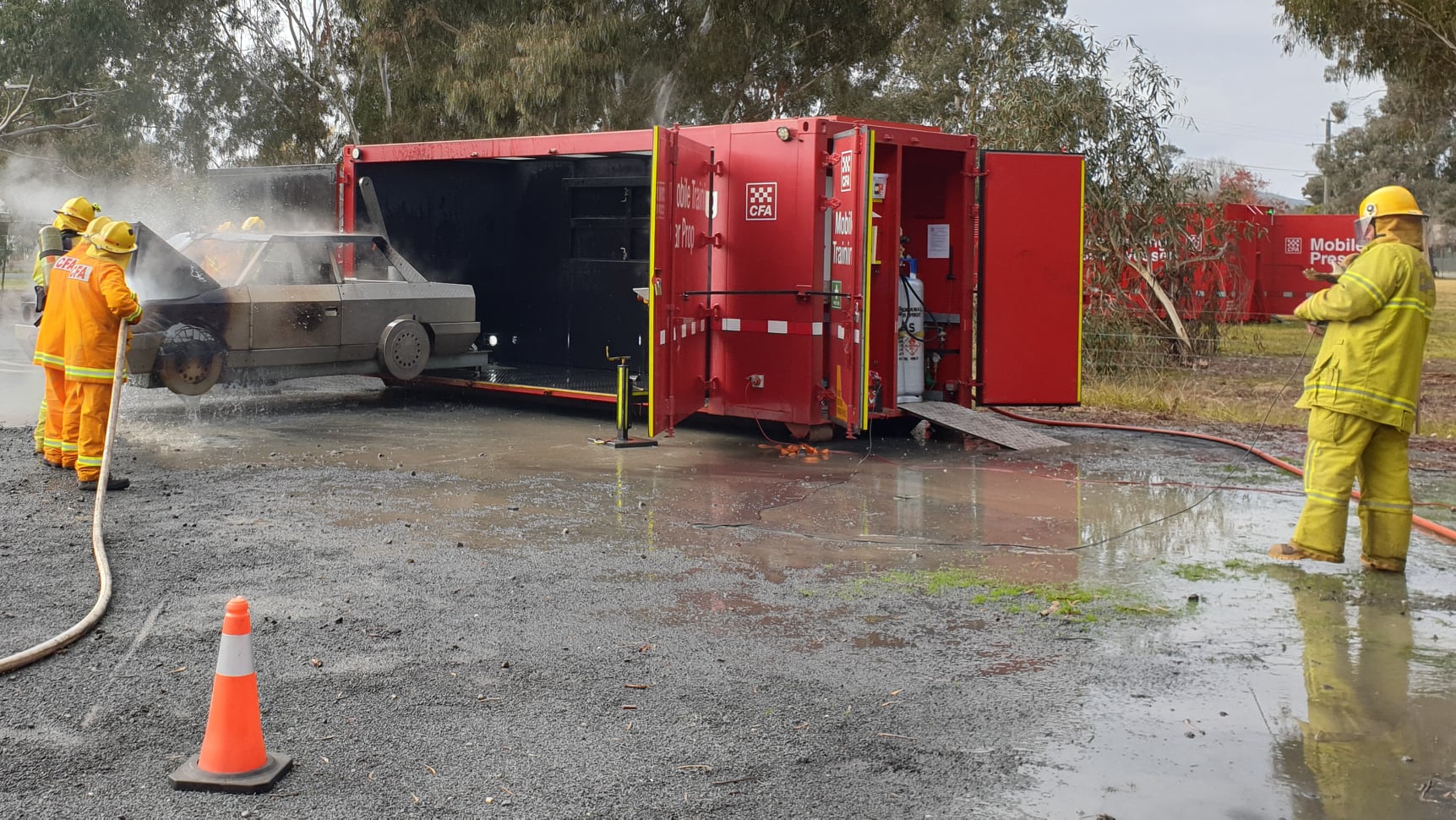 Two mobile training modules are currently located at Alexandra; one that simulates a car fire and another that allows members to practice a fire involving a LPG cylinder. The LPG cylinder prop is the newest addition to CFA’s range of mobile training modules.