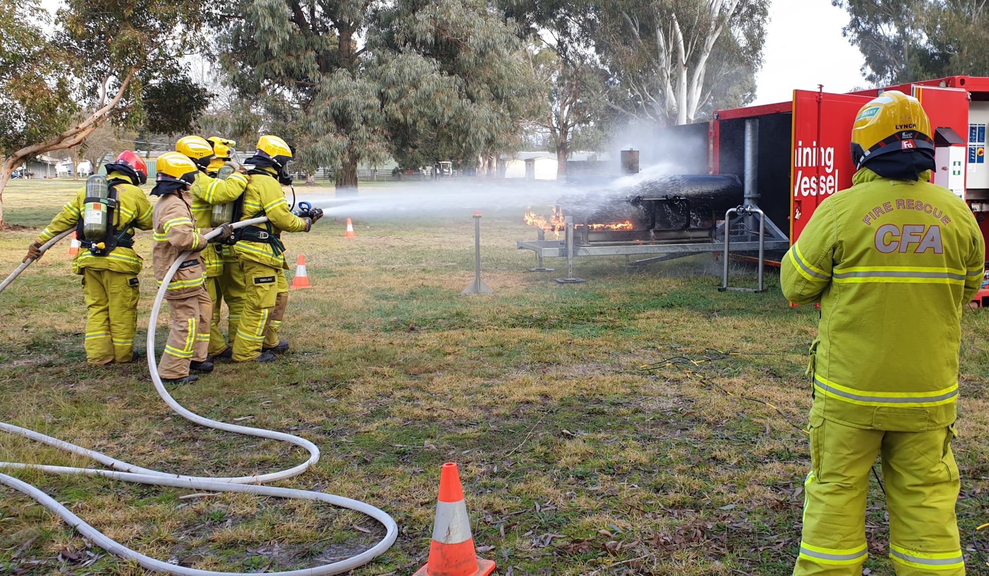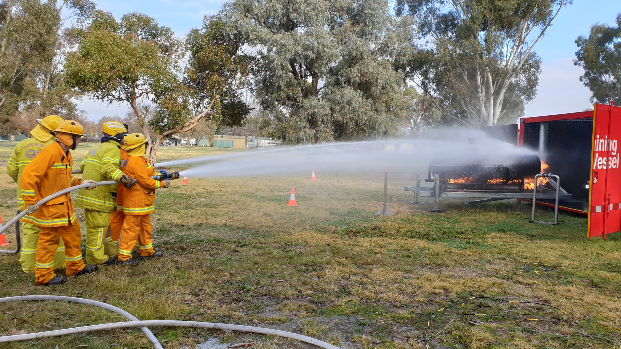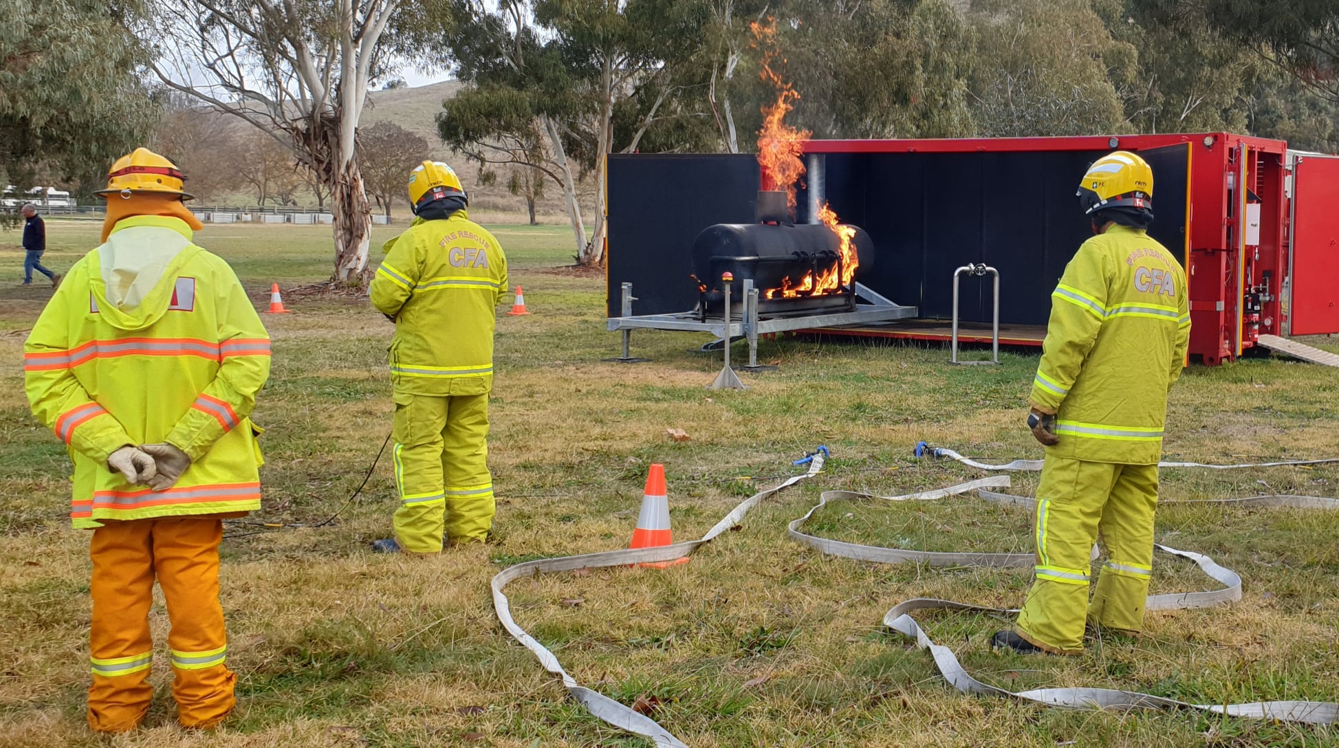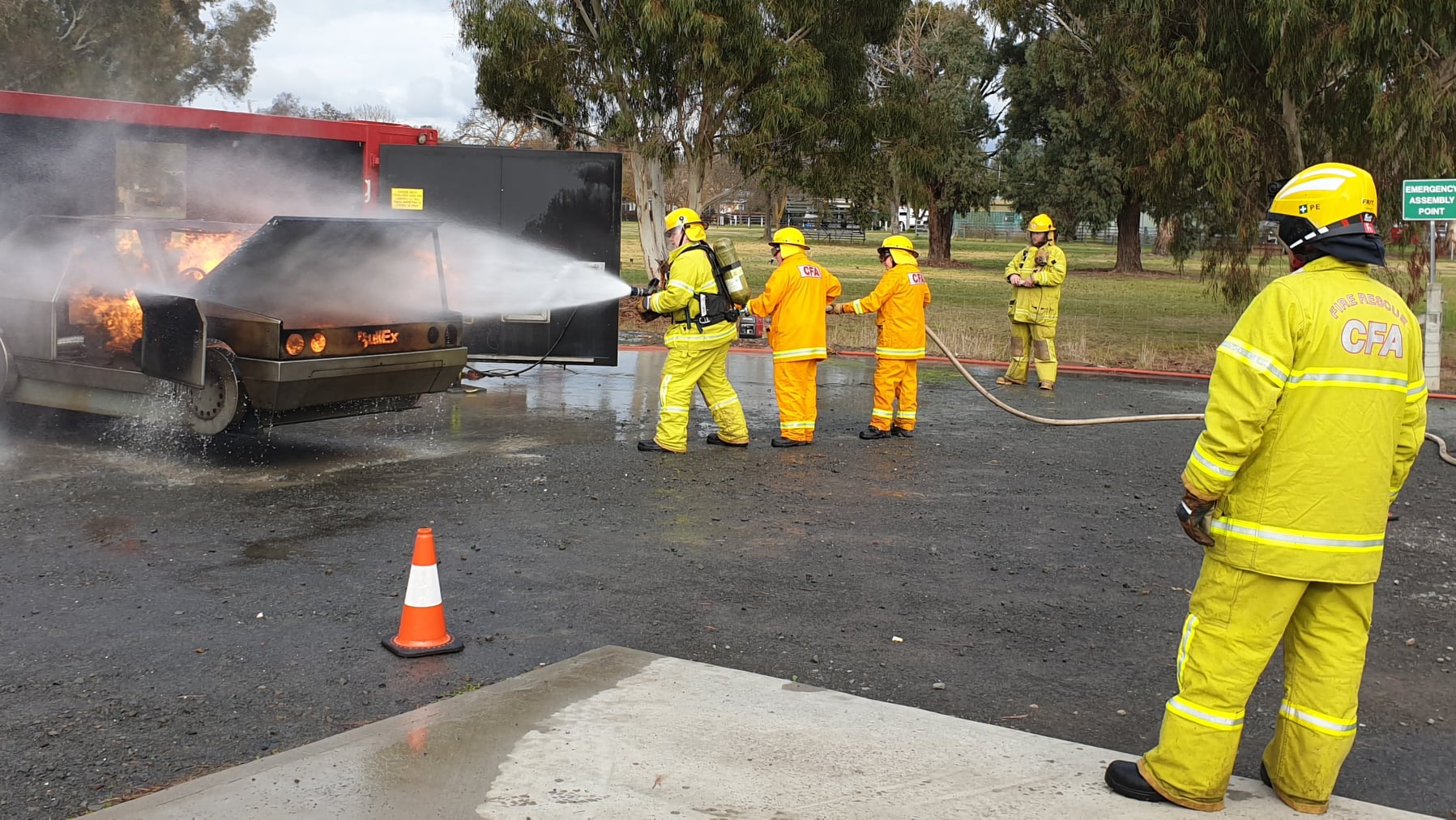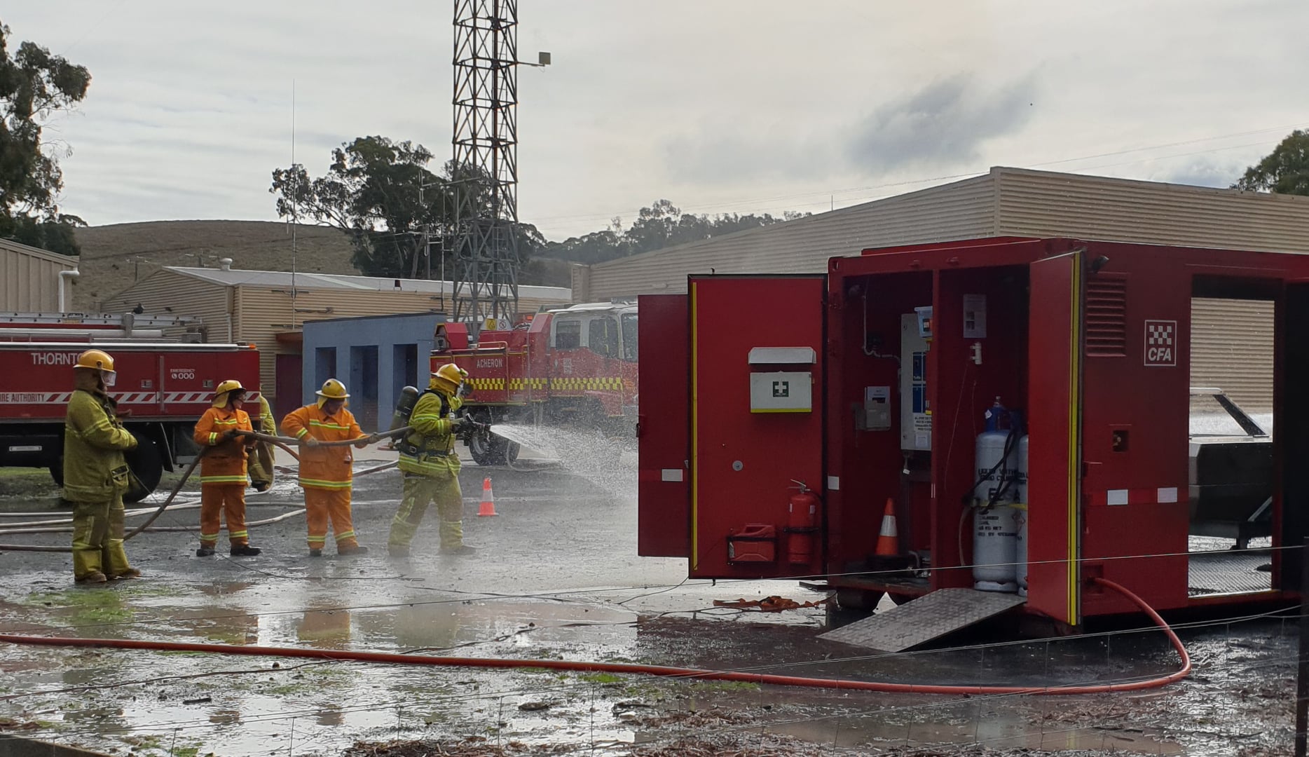 Two mobile training modules are currently located at Alexandra; one that simulates a car fire and another that allows members to practice a fire involving a LPG cylinder. The LPG cylinder prop is the newest addition to CFA’s range of mobile training modules.