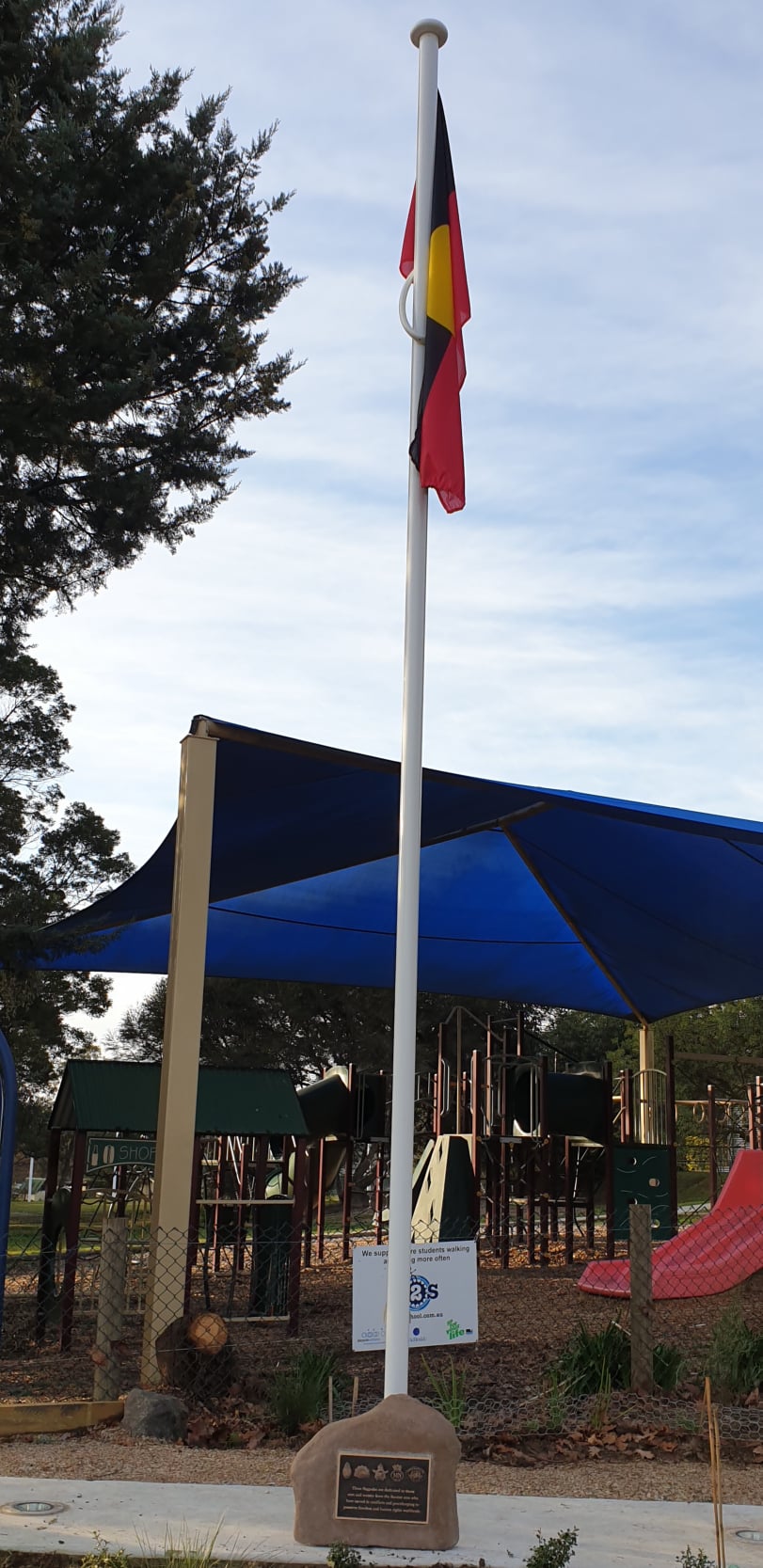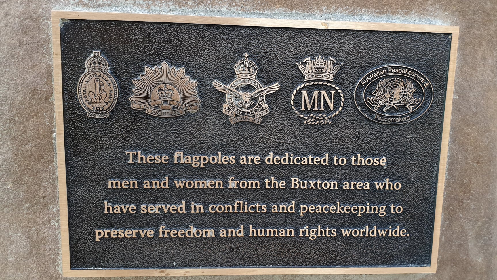 Earlier in the week, the dedication plaque was installed at the base of the flagpoles. The stone on which the plaque is mounted was sourced from a local farm courtesy of a brigade member. The new flagpoles are dedicated to those men and women from the Buxton area who have served in conflicts and peacekeeping to preserve freedom and human rights worldwide.