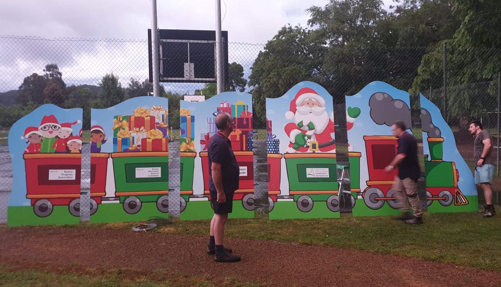 Our thanks again to Foundation Murrindindi for their support, last year, with funding of the new light weight decorations. There was a lot of praise this evening for former Buxton resident Martin Kok for his work in designing and fabrication of the new panels; so much easier to handle, position and secure in place.