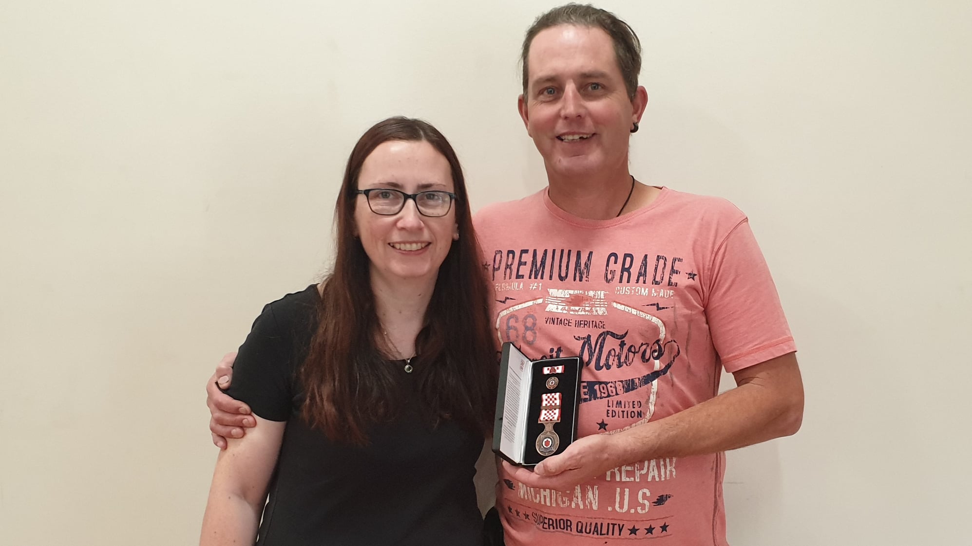A special presentation was also made by the brigade to Matthew and Johanna Carlton to honor their recent marriage. The presentation was made by Lieutenant Phil Ladson and Life Member Wayne Fiske. In keeping with tradition, Matt got to nominate what they would like for a wedding gift and Matt asked for a ladder to help him do maintenance around their new home. Our congratulations go to Matthew and Johanna; we wish them all the best for the future.