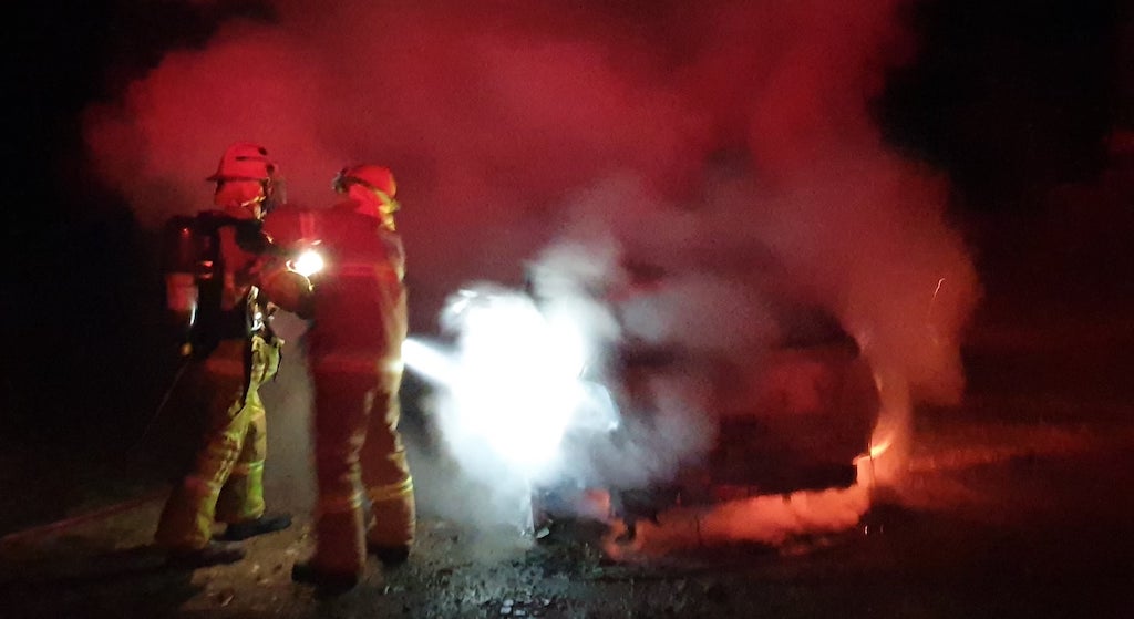 The vehicle was located at Worcester Road, just south of Nichols Road, and was well alight when the first appliance arrived at the scene. Structural qualified members from Buxton utilised compressed air breathing apparatus to extinguish the fire which was contained to the vehicle. The initial attack focused on the nearby grass and scrub to ensure fire had not spotted in to the bush; fortunately there was no wind and cool temperature.