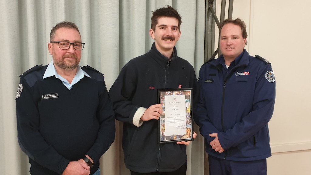 Following the AGM, five year service awards were presented to Kris Carlton and Isaac Sims. Thanks go to DGO Chris Lynch from Alexandra Group who presented certificates to Kris and Isaac assisted by Lt Phil Ladson.