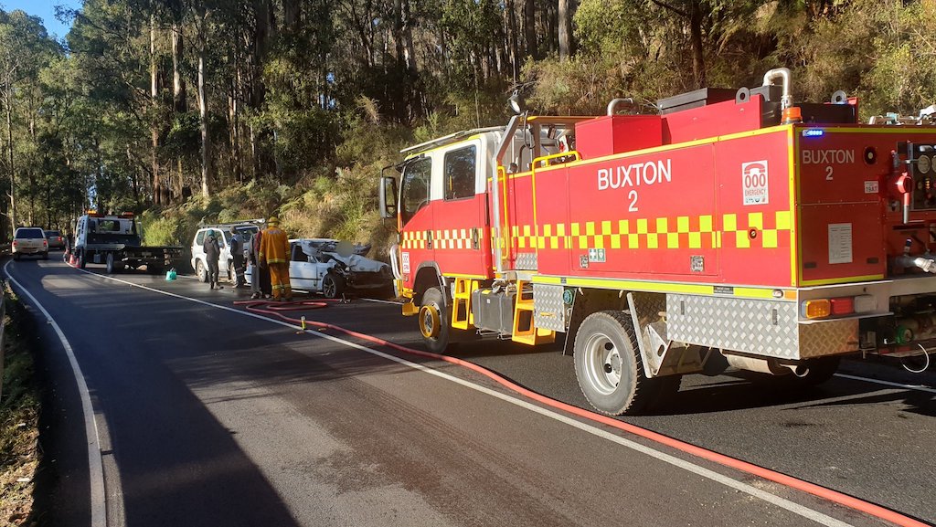 This morning Buxton and Marysville brigades were responded in support of Narbethong brigade for a reported motor vehicle accident on the Maroondah Highway below the Black Spur.