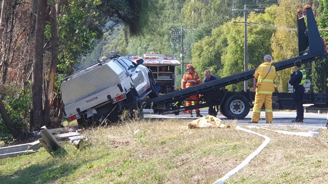 This afternoon, at 12:20pm, the brigade was responded to a motor vehicle accident on Maroondah Highway near the Little Steavenson River bridge. A vehicle had left the road just after the Dyes Lane intersection and collided with a tree after impacting the armco safety rail. The vehicle came to rest on top of the damaged armco rail.