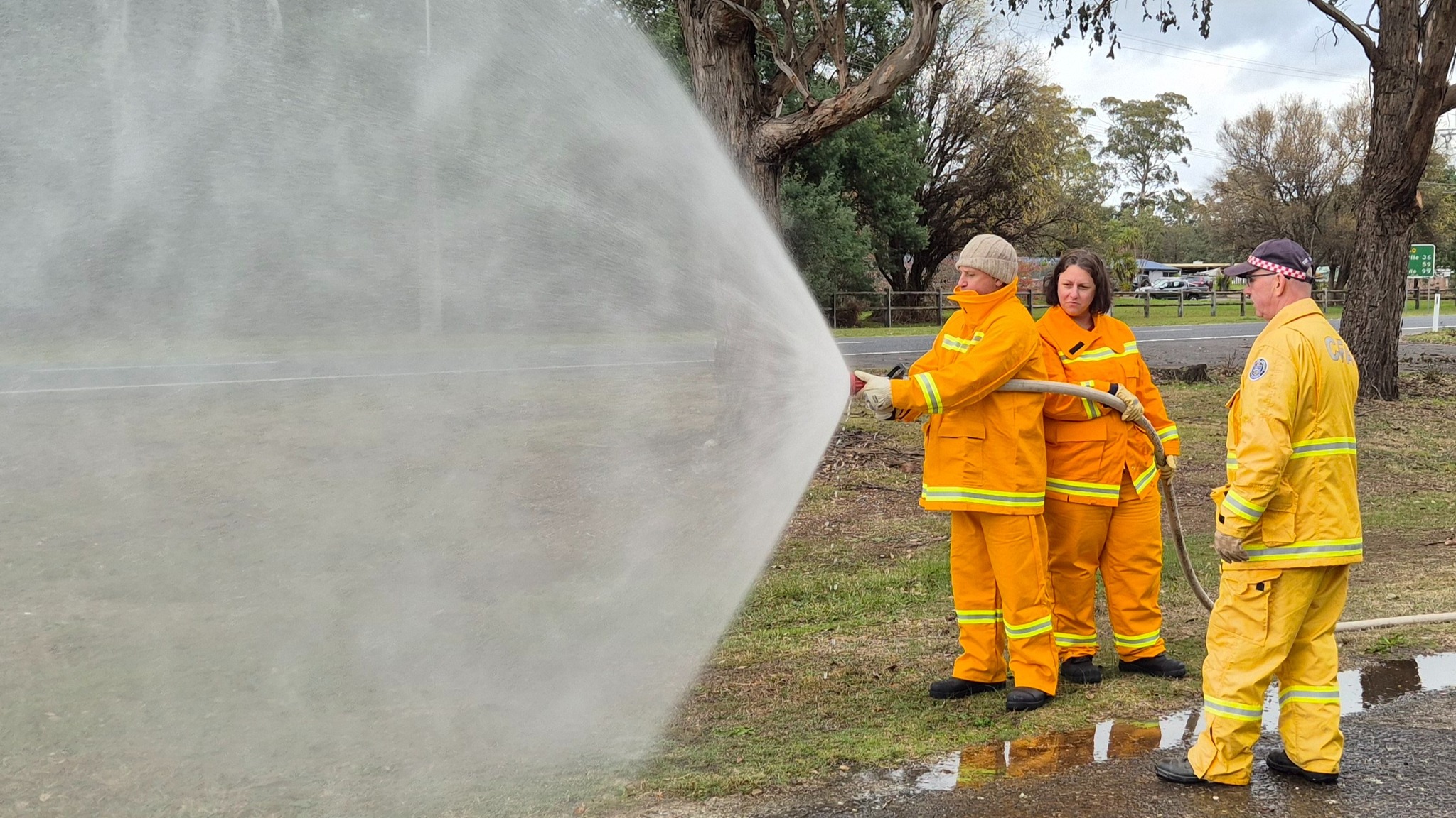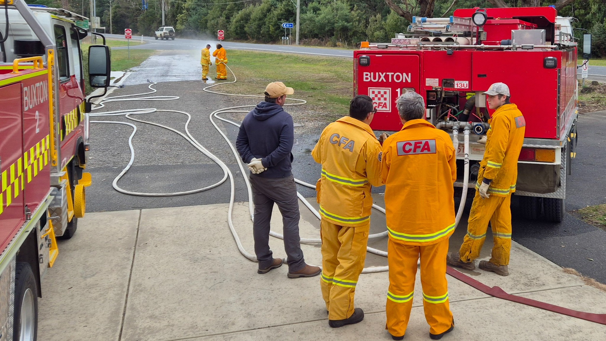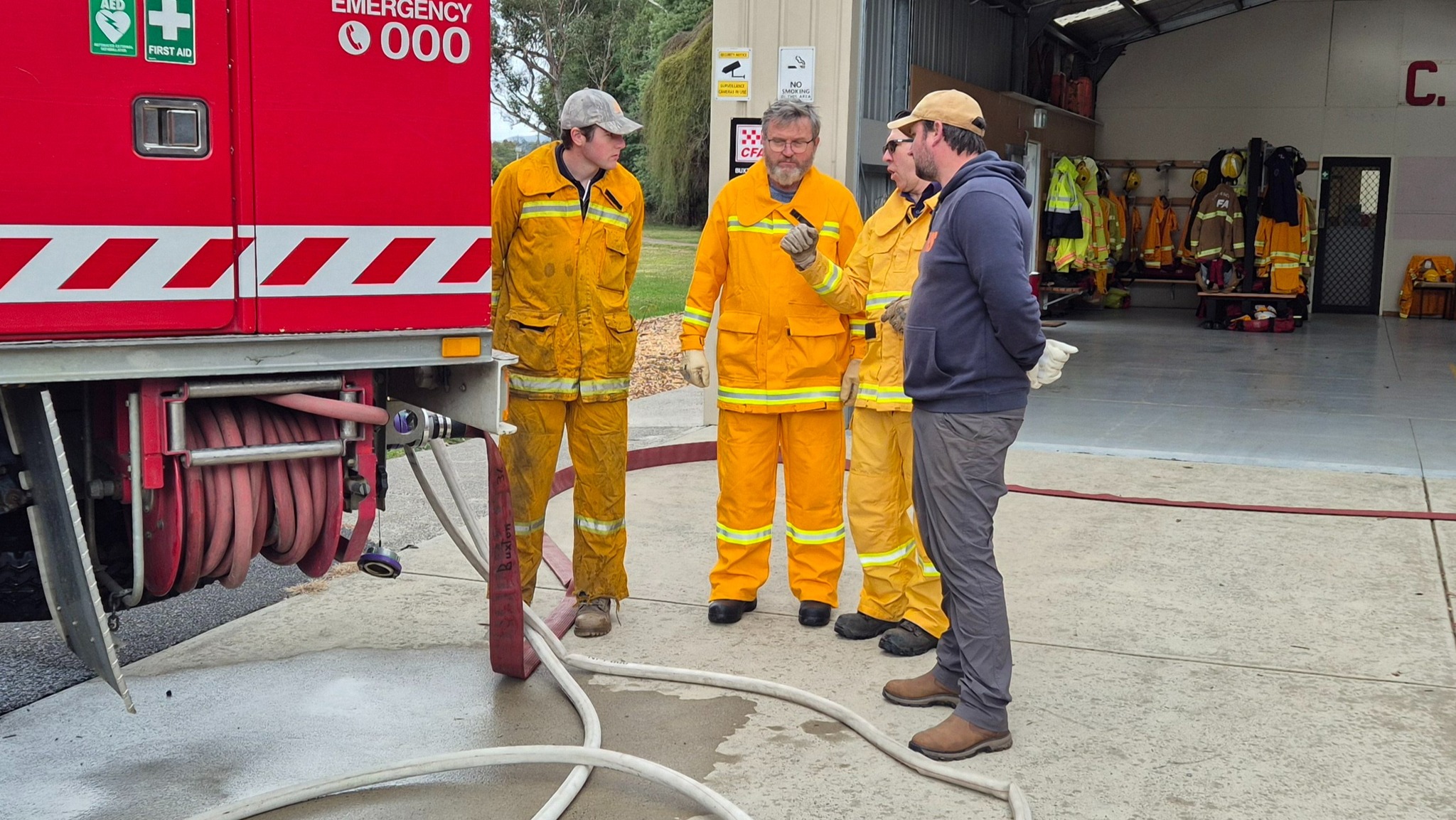 The recruits (some of whom are still in the process of being allocated their bushfire protective clothing) completed drills on radio operations, hose deployment, water delivery, and pump operations. This morning was one of three practical sessions offered, as part of the block course, to cover the mandatory practical drills and brigade familiarisation tasks in a group learning environment.
