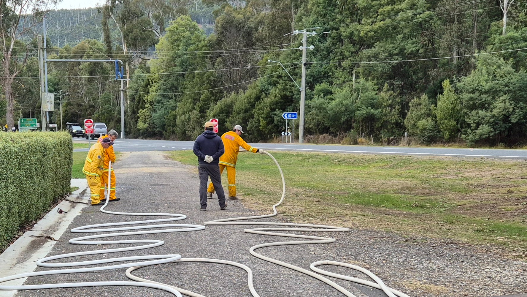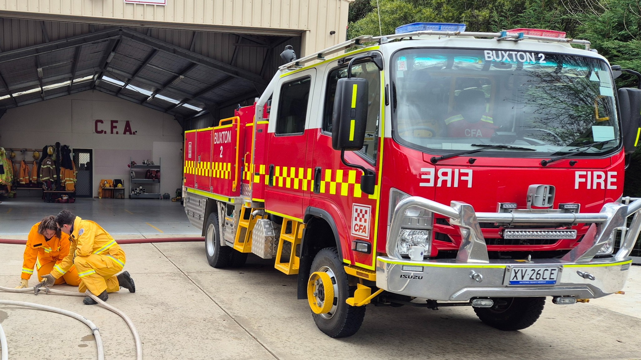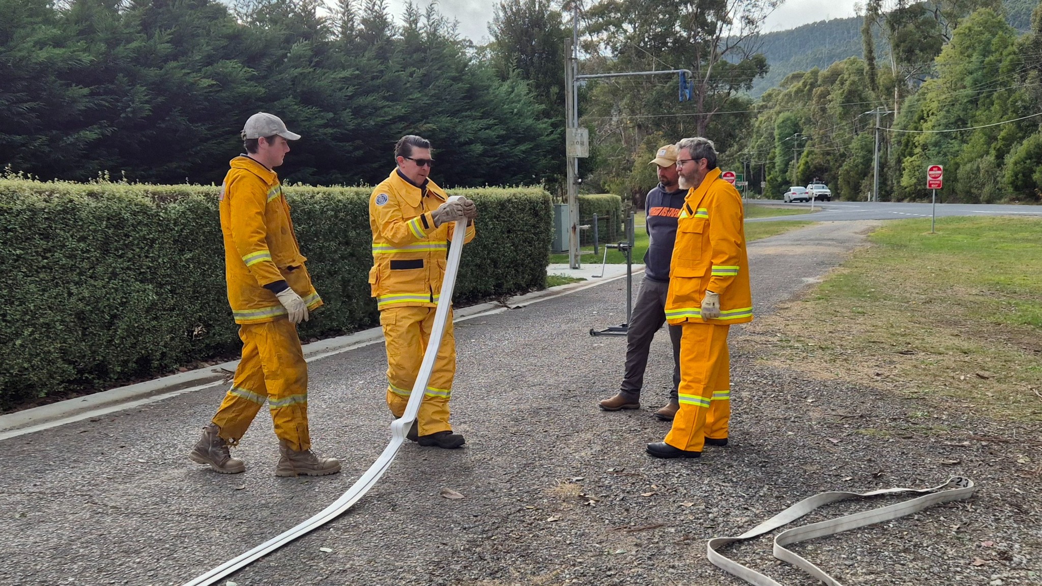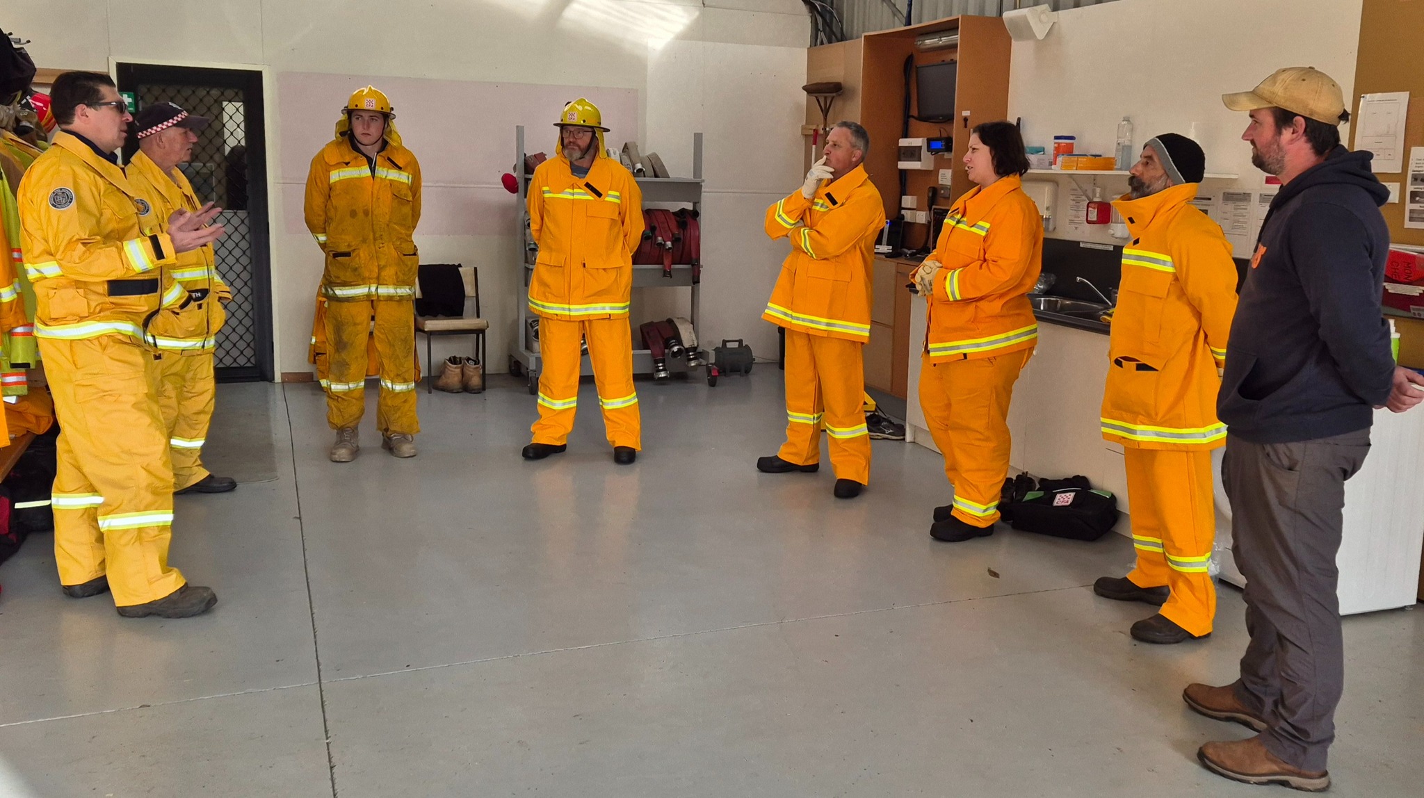 The recruits (some of whom are still in the process of being allocated their bushfire protective clothing) completed drills on radio operations, hose deployment, water delivery, and pump operations. This morning was one of three practical sessions offered, as part of the block course, to cover the mandatory practical drills and brigade familiarisation tasks in a group learning environment.
