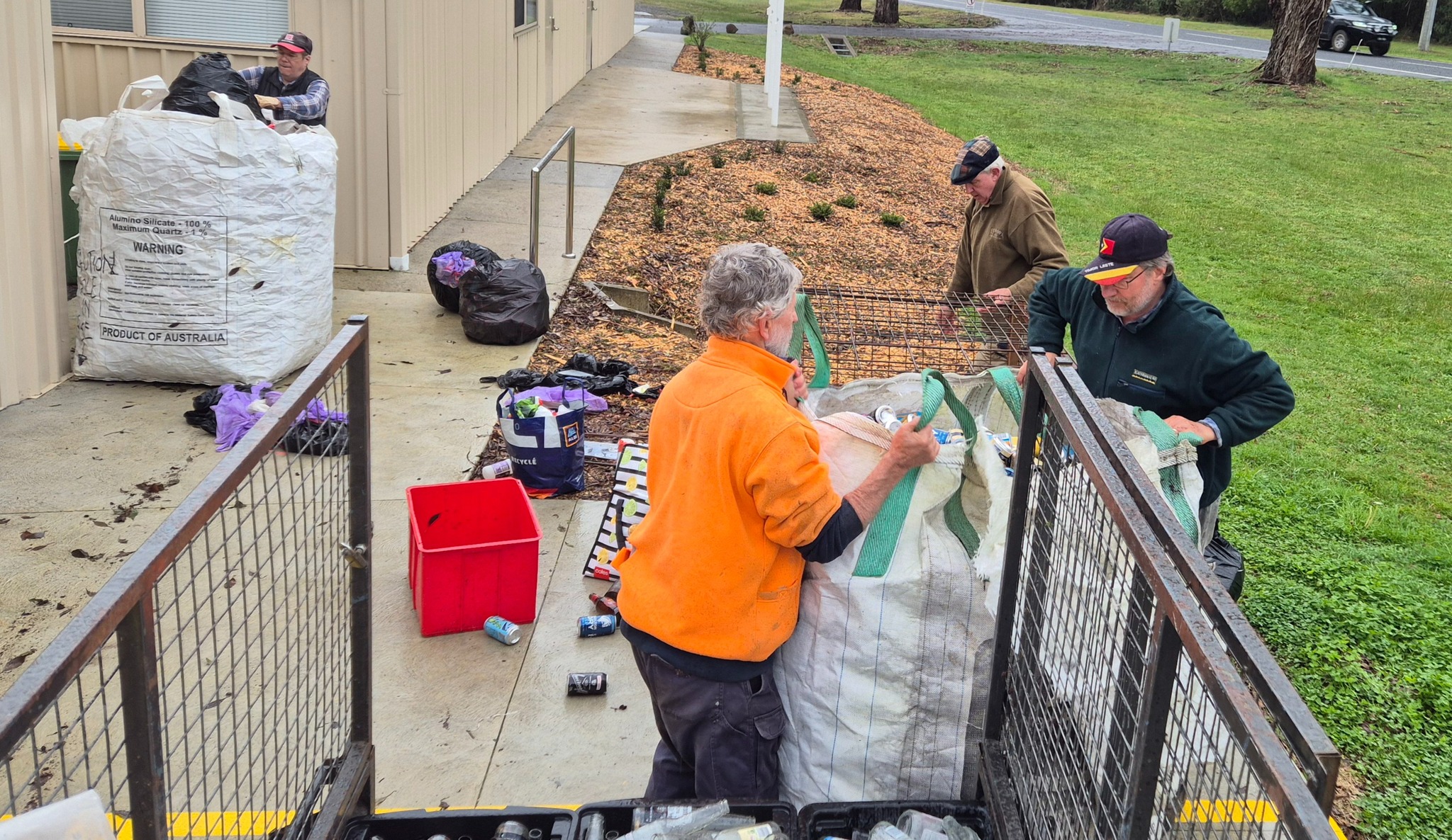 With a bale of bottles and another bale of aluminium cans loaded on the trailer, the guys relocated to the fire station to continue loading up for a load of containers to take over to Eildon tomorrow.