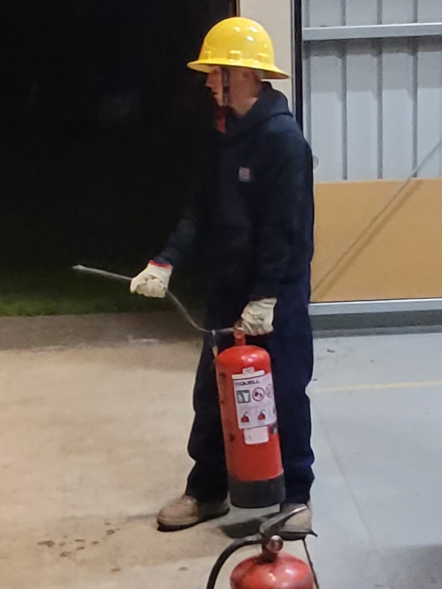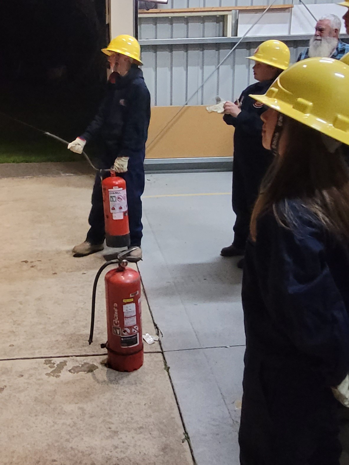 Six members of the Triangle Juniors spent last Wednesday evening learning how to use fire extinguishers. Following an explanation of the different classes of fire and the correct type of extinguisher to be used, a practical demonstration was conducted using the PASS technique: Pull, Aim, Squeeze and Sweep.