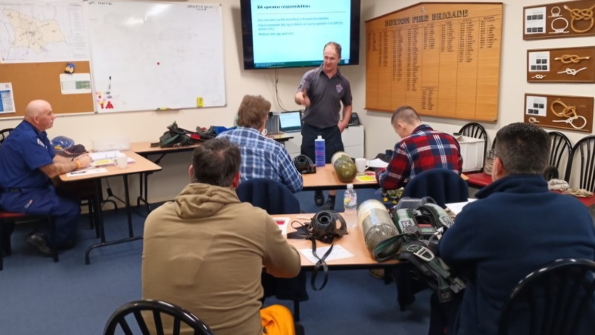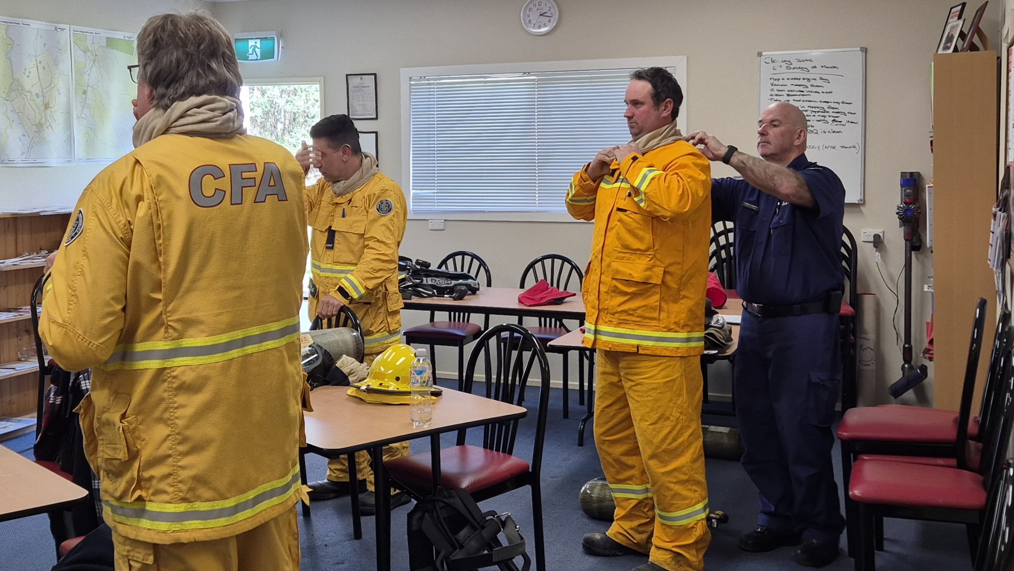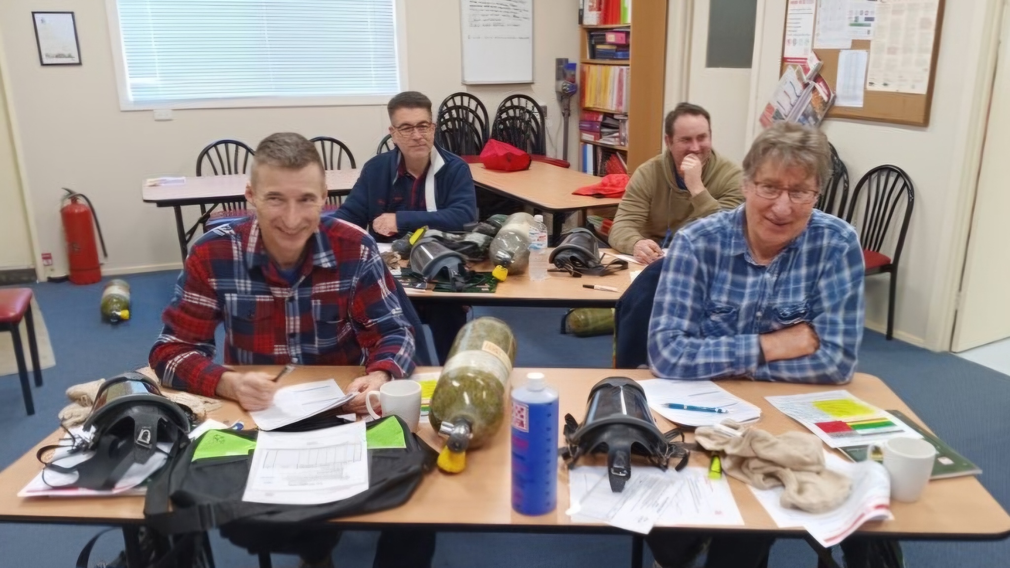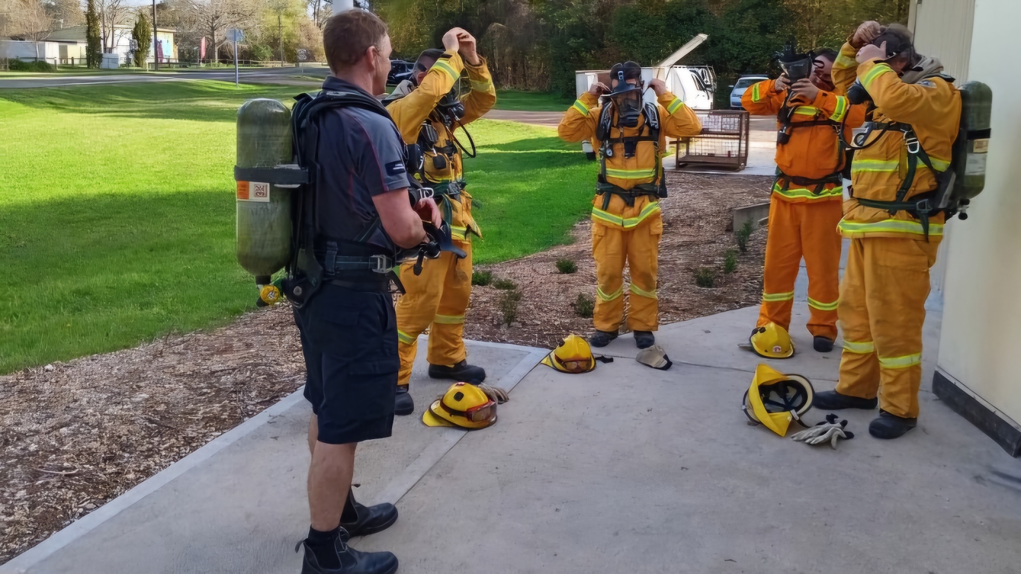 This weekend, we have four of our members undertaking a Compressed Air Breathing Apparatus course at the station instructed by District 12 Structural Instructor Terry Rule and Eildon's Lt Darren McGrath. Two of the members undertaking the course are full-time residents and the other two are part of our recreational property owners cohort; a good mix of full-time and part-time crew.